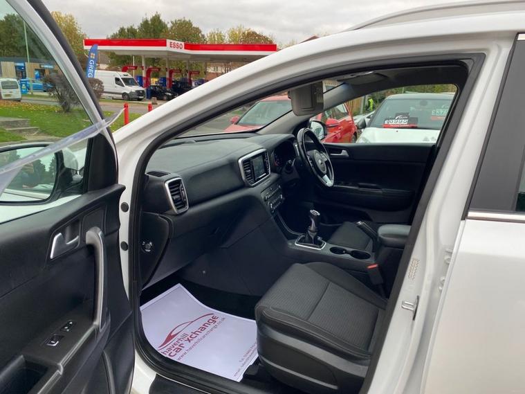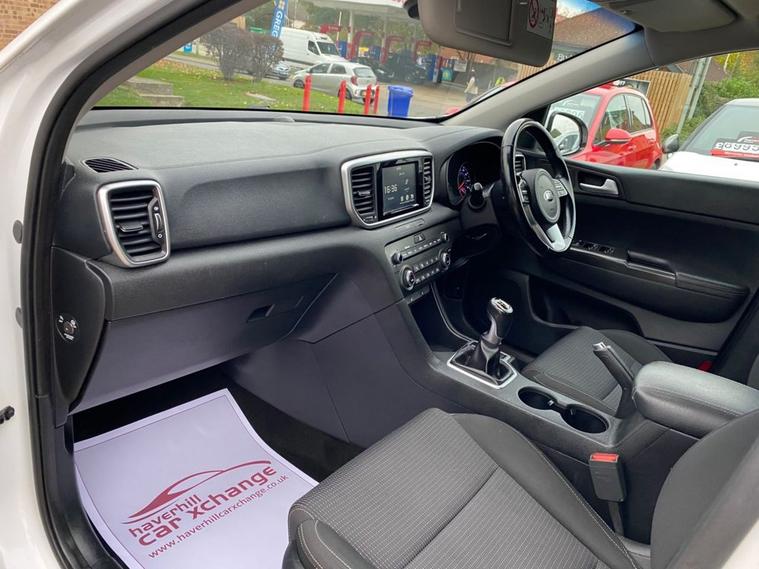 12 MONTHS MOT+SERVICE HISTORY+7 INCH TOUCHSCREEN SATELLITE NAVIGATION SYSTEM WITH EUROPEAN MAPPING+DAB RADIO/CD/MP3+BLUETOOTH MUSIC STREAMING+DUAL ZONE CLIMATE CONTROL AIR-CONDITIONING+HEATED SEATS+AUTOMATIC HEADLIGHT ACTIVATION+RAIN-SENSING WINDSCREEN WIPERS+PARKING ASSISTANCE WITH PARKING CAMERA+FUSION WHITE PAINT+17 INCH ALLOY WHEELS. At Haverhill Car Xchange we would like to offer you our Kia Sportage 2 SUV which has been finished in a Fusion White paint with luxurious HEATED Black premium cloth upholstery. Specification Includes a 7 Inch Touchscreen TOMTOM Satellite Navigation System, DAB Digital Radio-Apple CarPlay/Android Auto, MP3 Compatibility, Bluetooth with Music Streaming, USB Ports in Front and Rear, 12 Volt Power Socket in Front and Rear, Dual Zone Climate Control Air-Conditioning, Gear Shift Indicator, Cruise Control with Speed Limiter, All-Round Electric Windows with Drivers Auto Up/Down Function, Body Coloured Bumpers/Door Handles/Door Mirrors with Integrated Side Indicators and Rear Roof Spoiler, Chrome Front Bumper Insert, Automatic Bi-Function Halogen Headlights, LED Daytime Running Lights, Welcome and Follow-Me-Home Light Function, Projection Front Fog Lights, Rain-Sensing Windscreen Wipers, Heated Seats, Parking Assistance with Parking Camera, Leather Multifunction Steering Wheel, Tinted Glass, 17 Inch Alloy Wheels, Power Steering, Hill Start Assist, Child Safety Rear Door Locks, Alarm, Immobiliser, Remote Central Locking and ISOFIX Anchorage Points for Child Seats.