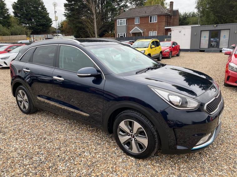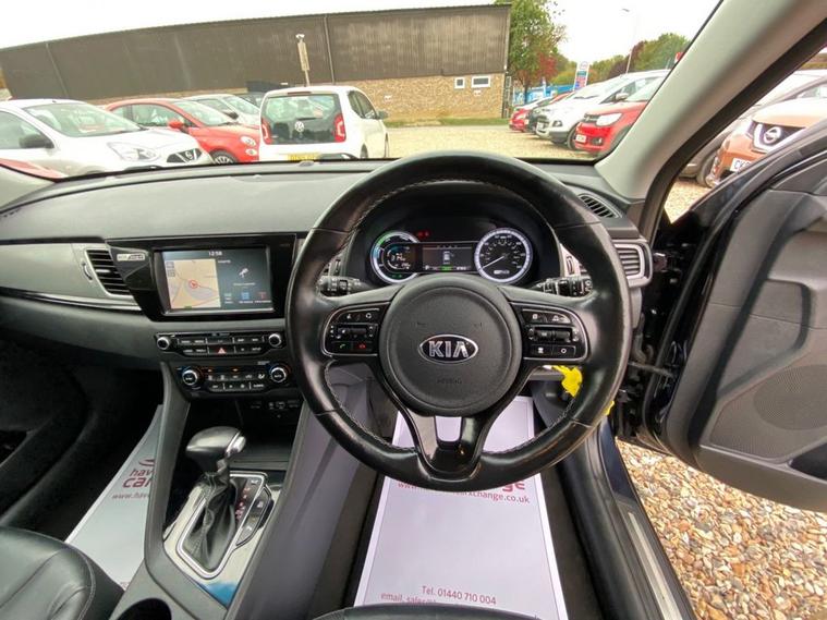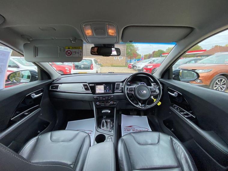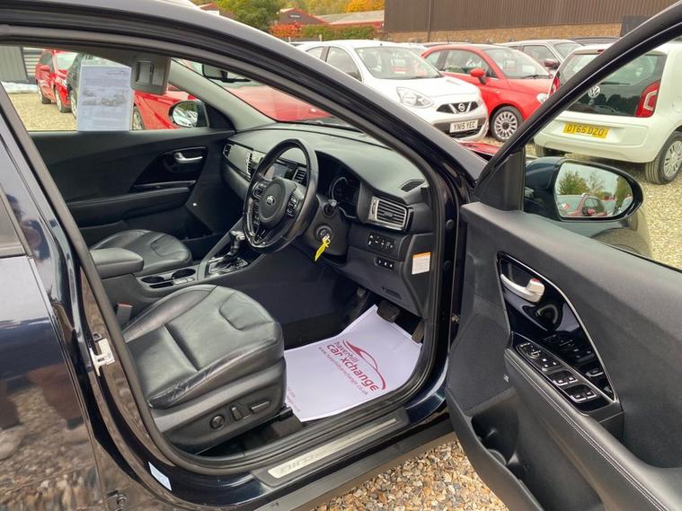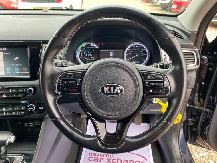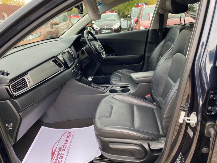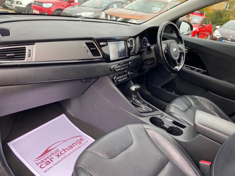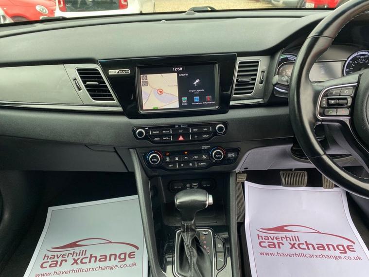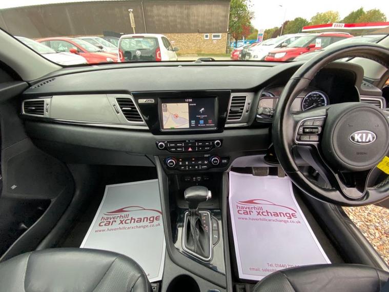 AUTOMATIC+EXCELLENT SERVICE HISTORY CONSISTING OF X7 SERVICES+8 INCH TOUCHSCREEN SATELLLITE NAVIGATION SYSTEM+DAB DIGITAL RADIO+BLUETOOTH WITH MUSIC STREAMING+DUAL ZONE CLIMATE CONTROL AIR-CONDITIONING+AUTOMATIC HEADLIGHT ACTIVATION+RAIN-SENSING WINDSCREEN WIPERS+FRONT & REAR PARKING ASSISTANCE WITH CAMERA+HEATED LEATHER UPHOLSTERY+HEATED MULTIFUNCTION STEERING WHEEL+METALLIC GRAVITY BLUE PAINT+16 INCH ALLOY WHEELS. At Haverhill Car Xchange we would like to offer you our AUTOMATIC Kia Niro 3 SUV which has been finished in a metallic Gravity Blue paint with luxurious HEATED Black leather upholstery and HEATED Multifunction Steering Wheel. Excellent Specification Includes an 8 Inch Touchscreen Satellite Navigation System with European Mapping, Kia Connected Services Featuring TOMTOM-Traffic-Speed Cameras-Local Search and Weather Updates, DAB Digital Radio- Apple CarPlay/Android Auto, Bluetooth with Music Streaming, Fast Charge USB Port in Centre Console, AUX Port, Wireless Phone Charger, Voice Recognition, Lane Keep Assist, Dual Zone Climate Control Air-Conditioning, All-Round Electric Windows, Body Coloured Bumpers/Door Handles and Door Mirrors with Integrated Side Indicators, Roof Rails, Automatic Headlight Activation, LED Daytime Running Lights, Welcome and Follow-Me-Home Headlight Function, Front Fog Lights, LED Rear Combination Lights, Rain-Sensing Windscreen Wipers, Heated Leather Upholstery, Front and Rear Parking Assistance with Parking Camera, Heated Leather Multifunction Steering Wheel, Tinted Rear Windows, 16 Inch Alloy Wheels, Impact Sensing Auto Door Unlocking, ABS Breaking System, Airbags, Alarm, Immobiliser, Remote Central Locking and ISOFIX Anchorage Points for Child Seats.