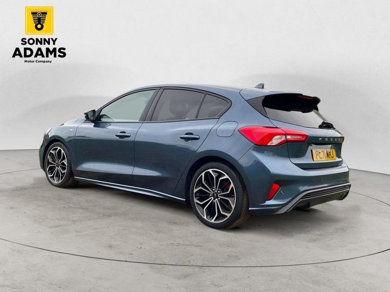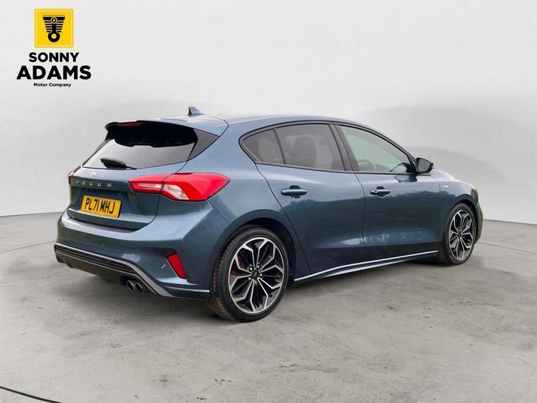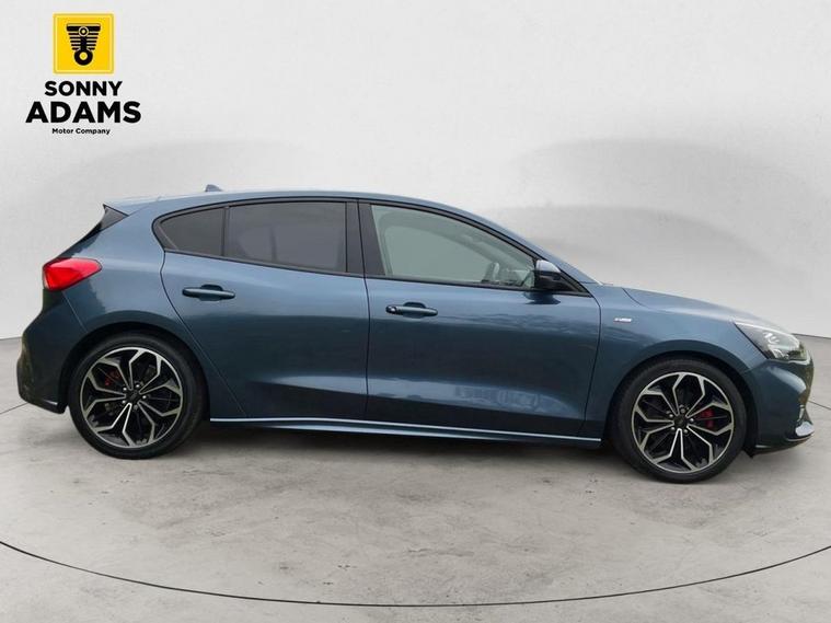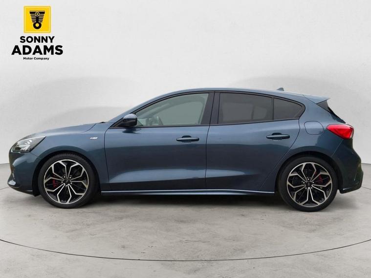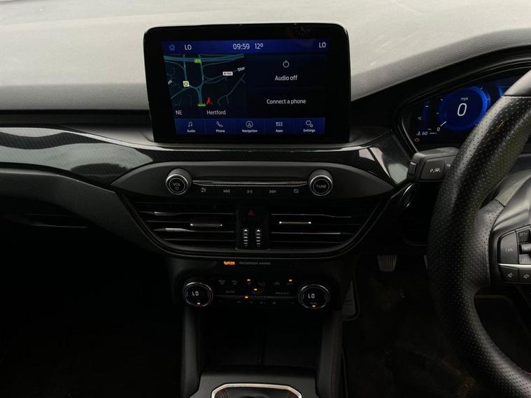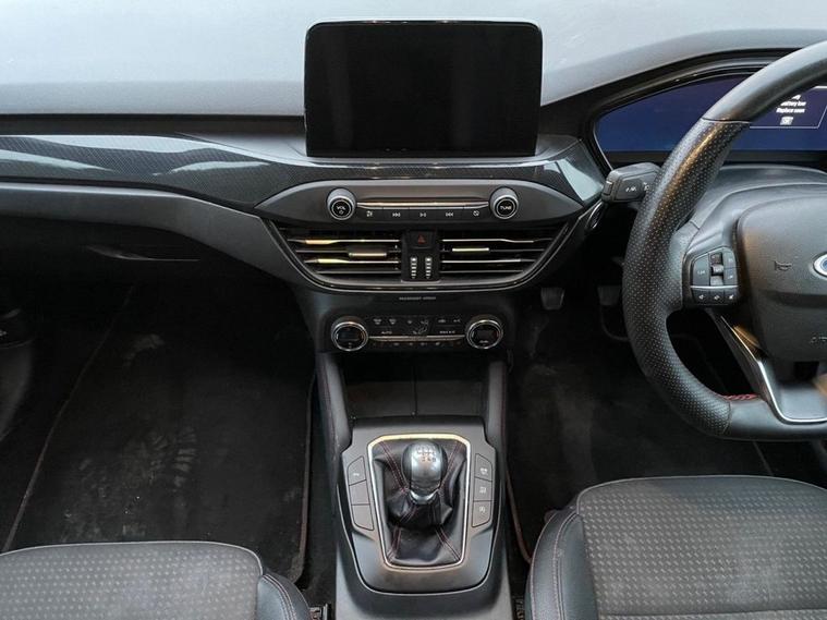 Experience sporty style and advanced technology with this Ford Focus ST-Line X. It features striking 18-inch 5x2 spoke matt black alloy wheels with a machined finish, complemented by unique ST-Line body styling including front and rear bumpers, side skirts, red brake calipers, and ST-Line badges. The polished twin tailpipe and large rear spoiler with centre high-mounted stop light enhance its dynamic look. Inside, enjoy a premium feel with heated sports-style front seats with high bolsters, red stitching on the flat-bottom leather steering wheel, floor mats, and soft console knee pads, plus ST-Line aluminium gearshift knob. The cabin is equipped with dual-zone electronic automatic temperature control (DEATC), a premium centre console with sliding armrest and cupholder, and keyless start with Ford Power Start button. Stay connected and informed via the Ford SYNC3 DAB navigation system and FordPass Connect. Drive with confidence thanks to advanced safety features like lane keeping aid with lane departure warning, pre-collision assist with autonomous emergency braking and pedestrian-cyclist detection, intelligent speed assistance, hill start assist, parking sensors front and rear, rain-sensitive windshield wipers, and LED daytime running lights with LED front fog lights including cornering function. Additional features include acoustic laminated windscreen, automatic dimming rear view mirror, electric parking brake, selectable drive modes, remote central locking with engine immobiliser, and ISOFIX child seat mounting provision. This vehicle has been Well-maintained with a great service history record. For added peace of mind, if the MOT is under six months, well ensure a fresh MOT is completed before sale. The vehicle also comes with a standard three-month back-to-base warranty, with the option to extend it to a nationwide warranty for added reassurance. Nationwide delivery is also available. For more details or to arrange a viewing, contact 02030183551 or email enquiries dealer's website
