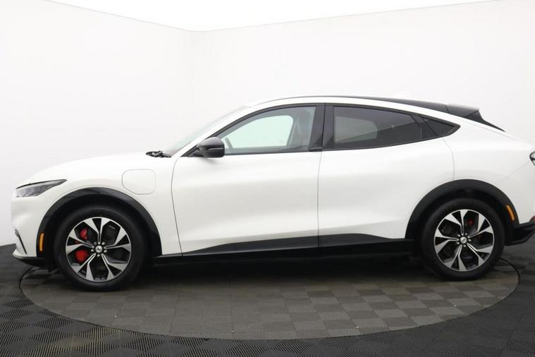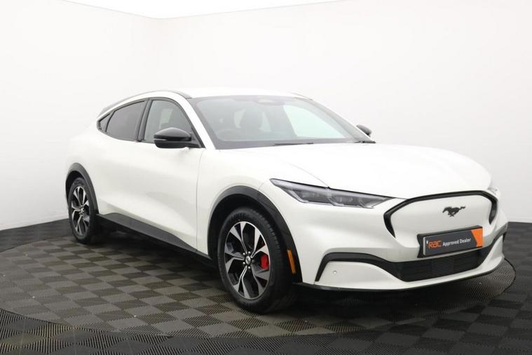Henson Car Store presents the FORD MUSTANG MACH-E Standard Range 70kWh SUV 5dr Electric Automatic AWD (269 ps) finished in White, this car comes with service history and is VAT qualifying. This 2022 Ford Mustang Mach-E Standard Range 70kWh AWD is a bold and electrifying SUV that combines iconic Mustang styling with cutting-edge electric performance. Powered by a dual-motor all-wheel-drive system producing 269 PS, it delivers instant acceleration, smooth power delivery, and confident handling in all driving conditions. The 70kWh battery offers an impressive electric range suited to both daily commutes and longer journeys, with rapid-charging capability ensuring quick top-ups at compatible charging stations across the UK. Its design blends muscular proportions with aerodynamic efficiency, featuring the signature Mustang-inspired front end, sleek LED lighting, and a coupe-like silhouette that gives it a dynamic road presence. Inside, the cabin offers a modern and minimalist layout with premium materials, a spacious seating arrangement, and a large central touchscreen powered by Fords SYNC 4A infotainment system. This intuitive interface provides access to navigation, smartphone connectivity via Apple CarPlay and Android Auto, and a host of connected vehicle features designed to enhance convenience and control. The Mach-Es quiet and refined driving experience is complemented by selectable drive modes that allow the driver to tailor performance and responsiveness. Advanced safety and driver assistance technologies, including adaptive cruise control, lane-keeping assist, blind-spot monitoring, and a 360-degree camera system, provide confidence and reassurance on every journey.