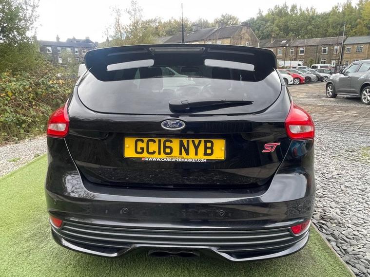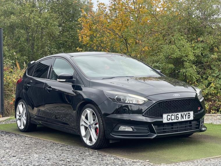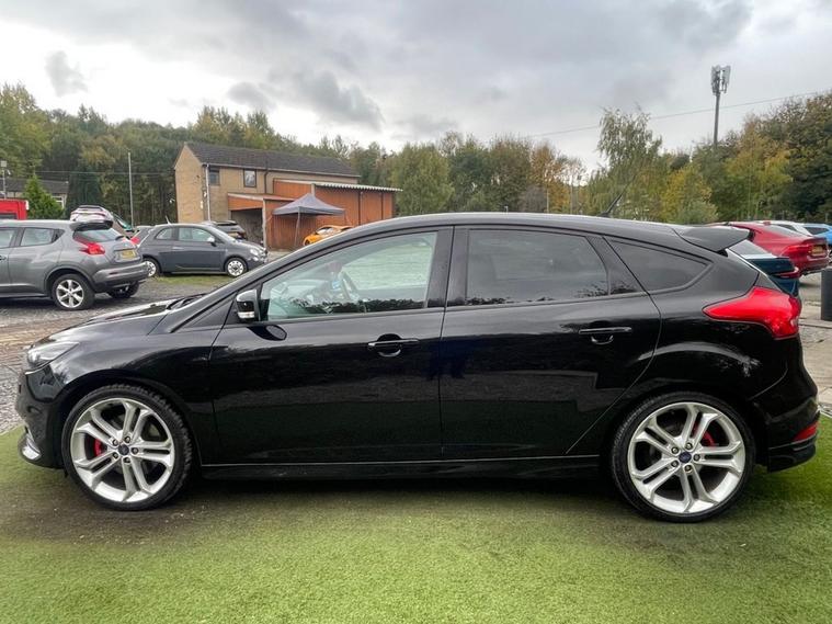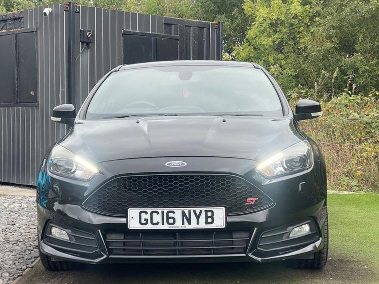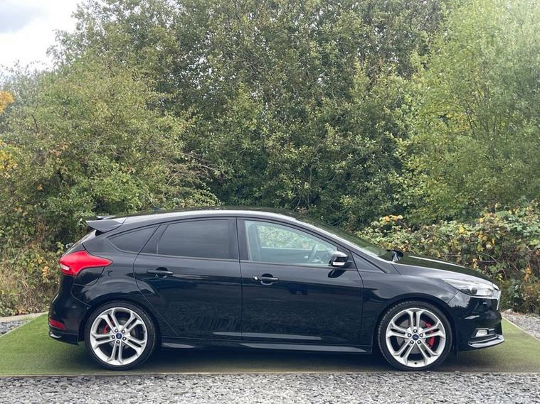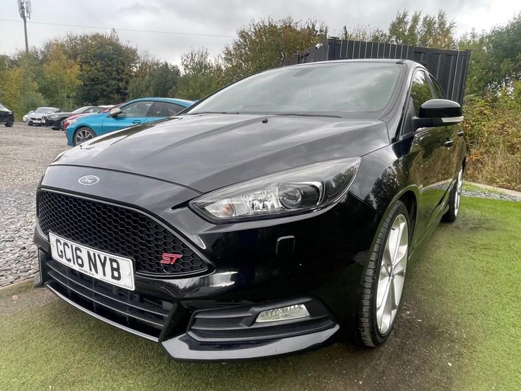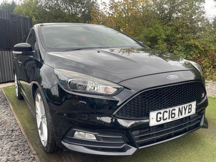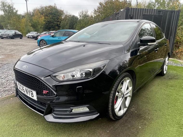 Discover this 2016 Ford Focus T ST-3, a performance focused hatchback that offers an exhilarating driving experience. Powered by a robust 2.0 litre petrol engine, this Euro 6 compliant model combines power with efficiency. The ST-3 trim level ensures you benefit from a host of desirable features, all presented within a practical and spacious design that includes a notably large boot, perfect for accommodating your luggage or shopping. The Ford Focus T ST-3 stands out with its impressive acceleration, achieving 0 to 60 miles per hour in just 6.5 seconds. This rapid acceleration demonstrates its superior performance compared to other vehicles in its class. Combined with its sporty handling and the refined ST-3 specification, this Focus offers a compelling package for those seeking both excitement and everyday usability. FORD FOCUS 2.0T ST-3 IN METALLIC BLACK, GENUINE 68310 MILES WITH A FULL SERVICE RECORD, LONG MOT, 6 MONTHS WARRANTY INCLUDED, HPI CLEAR, 6 SPEED MANUAL, COLOUR CODED EXTERIOR, POWER FOLD MIRRORS, REAR SPOILER, 19 ALLOYS, XENON HEADLIGHTS, REAR PARK SENSORS, PRIVACY GLASS, FLAT BOTTOM MULTI FUNCTION STEERING WHEEL, CRUISE CONTROL, VOICE COMMAND, START/STOP, ELECTRIC MIRRORS/WINDOWS, AUTO LIGHTS/WIPERS, DUAL CLIMATE CONTROL WITH AIR CONDITIONING, FORD SYNC SYSTEM, SATELLITE NAVIGATION, DAB DIGITAL RADIO, BLUE TOOTH, BLACK HEATED RECARO LEATHER SEATS WITH CONTRAST WHITE STITCHING AND ISOFIX.