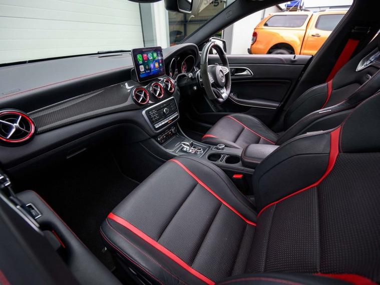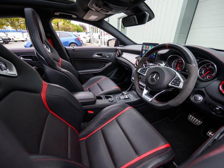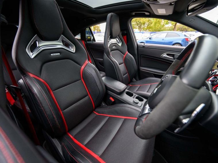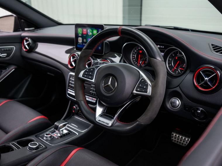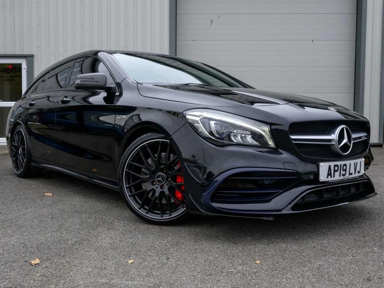 Sagitta is delighted to present for sale this stunning 2019 Mercedes-Benz CLA45 AMG Shooting Brake 4Matic in Metallic Cosmos Black with a Full Black Leather Interior with Contrast Red Flashings and Red Seat Belts, the car benefits from the following specifications, Satellite Navigation System, Reversing Camera, Bluetooth, Voice Control, Cruise Control, Apple Car Play, Keyless Entry, Electric Heated and Memory Seats, Parking Sensors, Multi-Function Steering Wheel, Stop Start System, AMG Performance Seats, AMG Dynamic Select, AMG Body Kit Front and Rear, Rear Spoiler, Sliding Glass Panoramic Sunroof, Electric Heated and Folding Mirrors, Privacy Glass, 19 Multi-Spoke Black Alloys with Red Brake Calipers , Service History at Mercedes at 24, 702 miles, at 33, 388 miles and then at Independents at 43, 218 miles and the car will come with a Fresh Service , MOT till 14.10.2026, 2 Keys, More photos are available on our website, Part Exchange Welcome, all our cars come with a 6-month Warranty through Autoguard and 12 months of AA Roadside Assistance. Nationwide delivery is available, please contact us for a quote. Deposits can be taken over the phone. Payments can be made via bank transfer and Finance applications can be completed online. Whilst every effort is made to ensure the above details are correct, there may be some discrepancies, so please make sure to contact us for exact specifications and history on this vehicle. The vehicle specification displayed may not be exact for this vehicle. Please contact us to confirm the precise specifications.