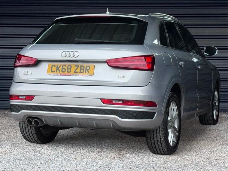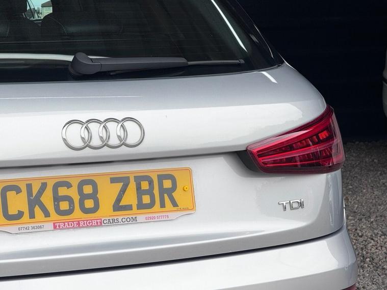 JUST ARRIVED & READY TO DRIVE AWAY! 2018/68 Audi Q3 2.0 TDi S-Line Edition [Nav] finished in Floret Silver. We are pleased to offer this lovely 5 door diesel SUV. This is the highly desirable and economical 2.0 litre model with a 6 speed manual transmission that offers 148 BHP and over 60 MPG. It has covered just 48, 394 miles with service history (6 services) and drives as you would expect. Just serviced upon arrival. MOT until 30th October 2026. The car is ready to drive away. We will also include a complimentary 12 month AA breakdown cover. Two owners from new, the last owner has had the car since 2022. Euro 6 status - ULEZ compliant. A superb low mileage example with the sought-after S-Line Edition specification. Key features include; 18 5-twin spoke alloy wheels, Audi DriveSelect, cruise control, DAB, front/rear parking sensors, navigation, A/C, electric powered tailgate, half leather upholstery with embossed logo and 6.5 colour display. Advertised below the AutoTrader RRP. Please let us know if you would like any further information or a video sent via WhatsApp.