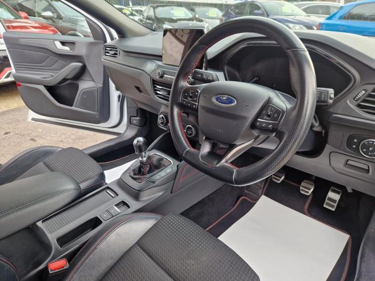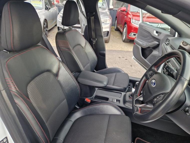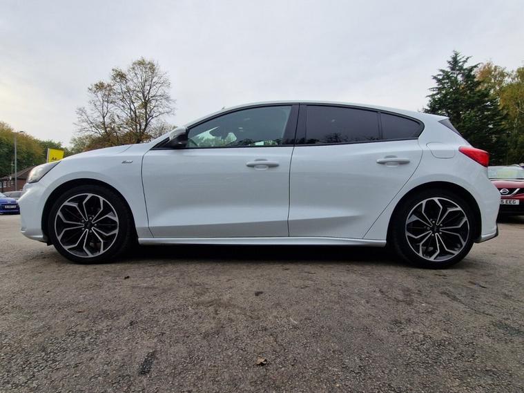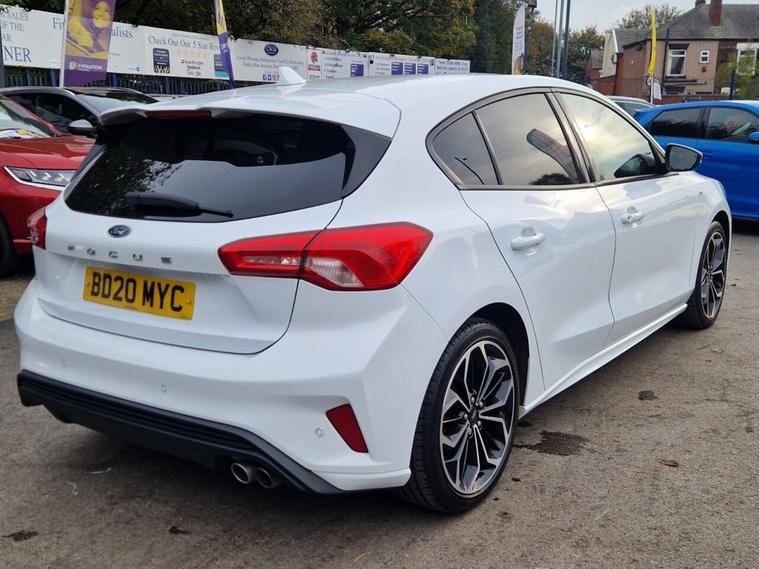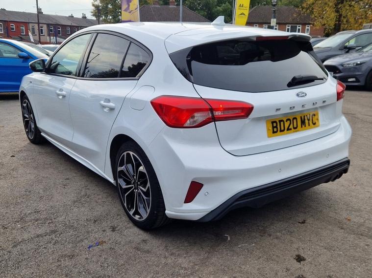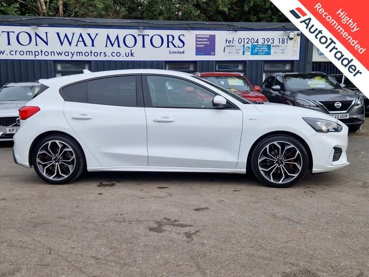 This 2020 Ford Focus ST-Line X boasts a recent full service completed on 01204219656 at 36, 624 miles, ensuring excellent provenance. This Euro 6 compliant 1.0L petrol model offers a dynamic driving experience with a 0-60mph acceleration of just 10.0 seconds. The ST-Line X trim level comes equipped with a host of desirable features, including the Ford SYNC3 DAB Navigation System with Android Auto and Apple CarPlay integration, automatic headlights, heated front seats for enhanced comfort, and front and rear parking sensors for added convenience. Inside, you will also find DEATC dual-zone electronic automatic temperature control, providing a pleasant cabin environment for all occupants. The Ford Focus ST-Line X stands out with its low CO2 emissions, making it a more environmentally conscious choice compared to many similar vehicles. Furthermore, the inclusion of a 12-month MOT provided on purchase and a 6-month warranty offers peace of mind for the new owner. This combination of advanced technology, comfort features, and strong provenance makes this Ford Focus a compelling option for those seeking a well-equipped and reliable hatchback.