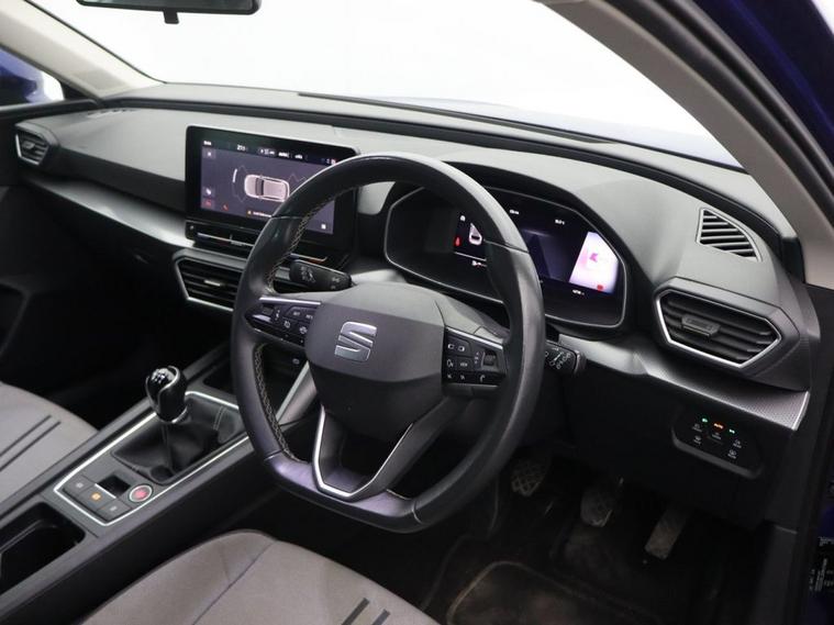 This 2021 SEAT Leon TSI EVO SE Dynamic boasts a clear vehicle history check, offering you complete peace of mind. This Euro 6 compliant 1.0 litre petrol model comes with a long MOT, ensuring its roadworthiness for years to come. The SE Dynamic trim level includes a range of convenient features such as separate daytime running lights with automatic headlight control and LED headlights and taillights for enhanced visibility. Navigating tight spots is made easy with Park Assist, complete with front and rear parking sensors, while the Media System Plus with navigation and Bluetooth keeps you connected and entertained on every journey. Experience superior comfort with the three zone climate control, allowing everyone to set their preferred temperature. The generous boot space provides ample room for all your luggage, shopping, or sports equipment, making this Leon a practical choice for everyday life and longer trips. These thoughtful features and the comprehensive provenance information demonstrate how this SEAT Leon stands out from other vehicles in its class, offering a well maintained and feature rich driving experience.