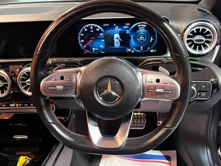 This 2018 Mercedes Benz A Class A250 AMG Line (Premium Plus) boasts exceptionally low mileage for its age, having covered just 43, 449 miles. Powered by a responsive 2.0 litre petrol engine and meeting Euro 6 emissions standards, this model offers a compelling blend of performance and efficiency. The AMG Line trim enhances its sporty appeal, while the Premium Plus package adds significant comfort and convenience, including LED high performance headlamps with integrated daytime running lights, a panoramic opening sunroof, and heated front seats with memory function. Experience effortless driving with features like keyless entry and advanced parking assistance, complemented by a 180 degree reversing camera for complete visibility. The Advanced Connectivity Package ensures seamless integration with your digital life, offering Android Auto, Apple CarPlay, and wireless phone charging. With a swift 0-60mph acceleration time of just 6.2 seconds, this A Class delivers exhilarating performance. Furthermore, its generous boot space makes it a practical choice for everyday use and longer journeys, setting it apart from other vehicles in its class.