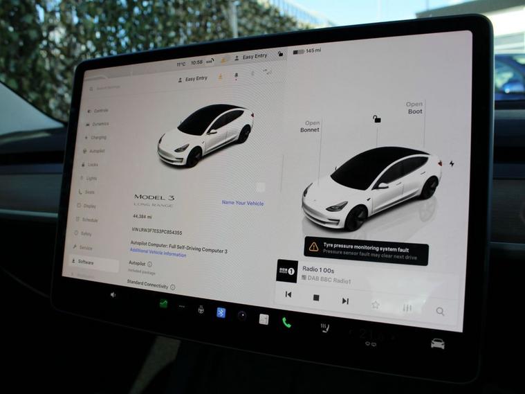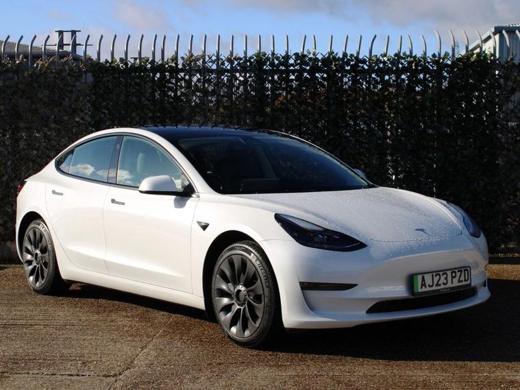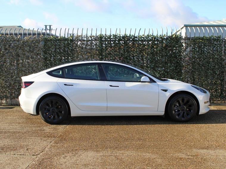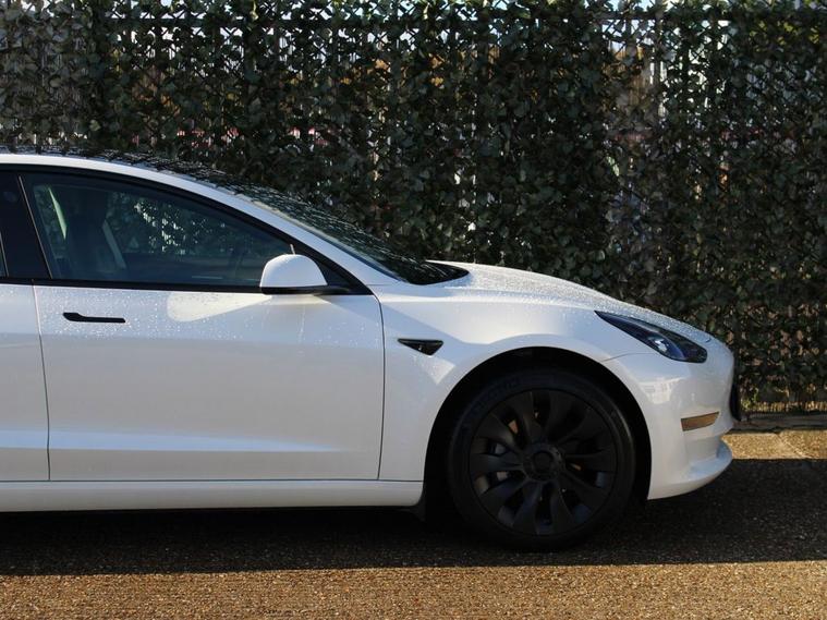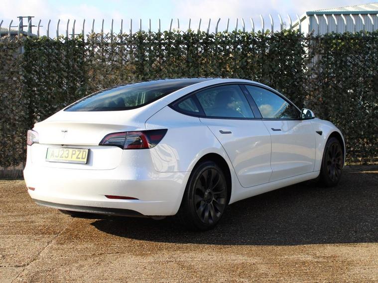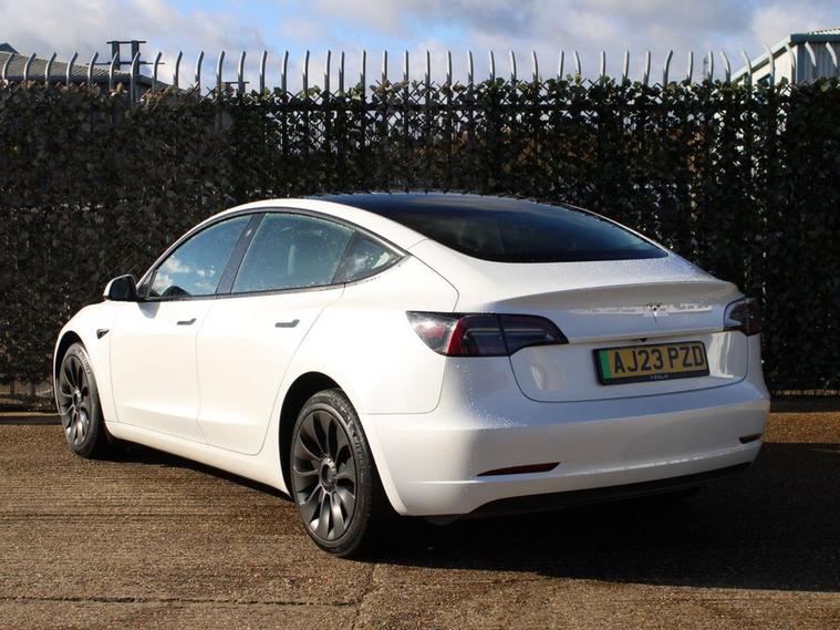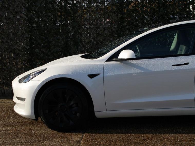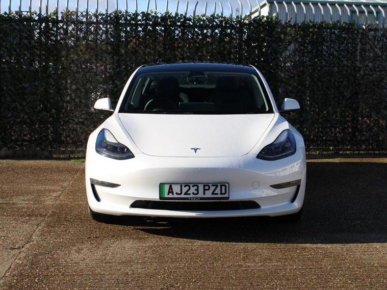 **93.8% BATTERY HEALTH** This 2023 Tesla Model 3 Long Range presents an exceptional ownership opportunity, having had only one owner since new. As an electric vehicle, it boasts a substantial 78 kWh battery, offering an impressive maximum range of 394 miles. This Model 3 is equipped with advanced safety features including Blind Spot Warning with Blind Spot Assistance and Seat Belt Pre-Tensioners, alongside practical additions like a Dual Wireless Phone Charger and Pre-Conditioning with Air Conditioning. For added convenience and safety, it also features Child Locks. The Long Range variant of the Tesla Model 3 stands out with its remarkable 394 mile range, a key indicator of its superior capability compared to many other electric vehicles. Charging is efficient, with a full charge at home taking approximately 12 hours using a 7kW charger, and a rapid charge to 80% achievable in just 25 minutes at a public charging station. This combination of extensive range, convenient charging options, and advanced technology makes this Model 3 a compelling choice for those seeking an efficient and well equipped electric car.