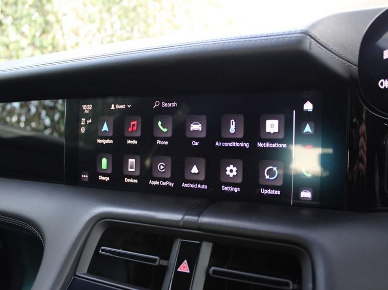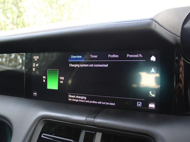 **93.9% BATTERY HEALTH** This 2021 Porsche Taycan Performance Plus is a remarkable example, boasting exceptionally low mileage for its age with only 17, 735 miles covered and having been cherished by just one owner. As a fully electric vehicle, it offers a substantial battery total capacity of 93 kWh, providing a maximum range of 301 miles when new. This Taycan is equipped with advanced LED headlights that feature automatic activation and welcome home lighting, ensuring excellent visibility. Inside, youll find advanced 2 zone climate control for personalised comfort and heated front seats for those colder journeys. Parking is made simpler with ParkAssist, which includes front and rear sensors providing visual and audible warnings. The charging capabilities of this electric Porsche are impressive, with a full charge at home using a 7kW charger taking approximately 13 hours and 30 minutes, ideal for overnight top ups. For quicker charging on the go, it can reach 80% capacity from empty in as little as 25 minutes at a public charging station. These features, combined with its electric powertrain and the renowned Porsche driving experience, position this Taycan Performance Plus as a superior choice for those seeking performance, efficiency, and cutting edge technology in an electric saloon.