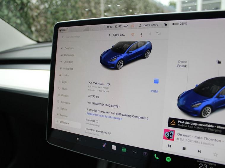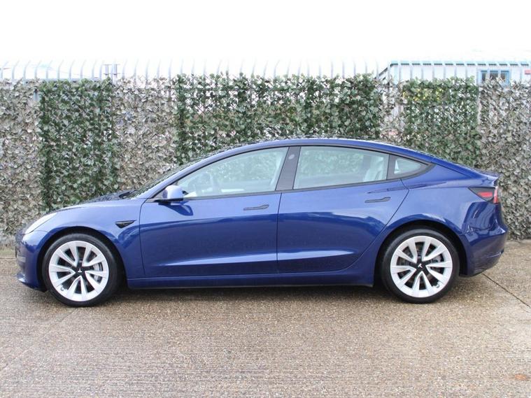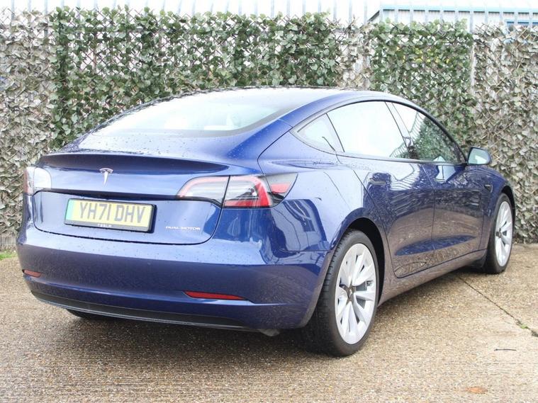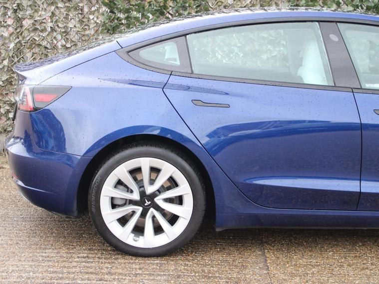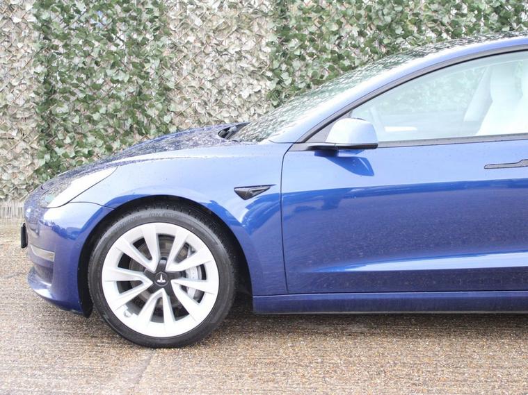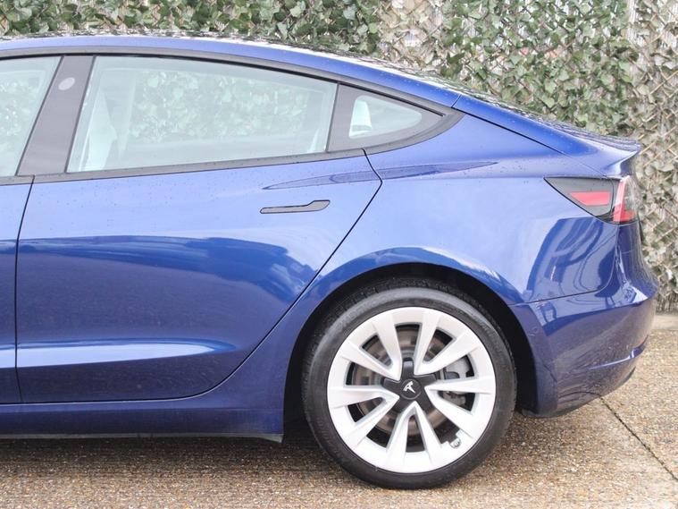 ** 91.5% BATTERY HEALTH **WHITE LEATHER** 19IN SILVER SPORTS ALLOYS** This 2021 Tesla Model 3 Long Range presents a superb ownership proposition, having had only one owner since new. As an electric vehicle with Four Wheel Drive, it offers a compelling blend of performance and efficiency. Its substantial 78 kWh battery provides an impressive maximum range of 360 miles when new, ensuring you can travel further on a single charge. Charging is convenient, with a full charge at home taking approximately 12 hours using a 7kW charger, and rapid public charging can replenish the battery from empty to 80% in just 26 minutes. The Model 3 Long Range is equipped with a range of advanced features designed to enhance your driving experience. These include Blind Spot Information with Blind Spot Assistance, two inductive charging mats for wireless smartphone charging, and Adaptive Cruise Control for effortless journeys. Enjoy the spacious feel and natural light provided by the fixed panoramic glass roof, and stay comfortable in all conditions with the efficient air conditioning system. The 360 mile range highlight demonstrates its capability to cover significant distances, setting it apart from many other electric vehicles in its class.