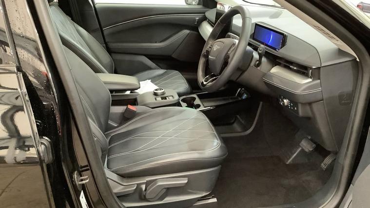 **95.6% BATTERY HEALTH** This 2022 Ford Mustang Mach E Standard Range presents an exceptional opportunity with its remarkably low mileage of just 7500 miles, having been owned by only one person. This electric vehicle boasts a 76 kWh battery, offering a maximum range of 273 miles when new. For convenient charging at home, a full charge using a 7kW charger takes approximately 11 hours and 24 minutes, while rapid public charging can replenish the battery from empty to 80% in just 43 minutes. Notable features include a heated steering wheel, E-Latch keyless entry with B-pillar keypad access, a wireless device charging pad, heated front and passenger seats, and front and rear parking sensors for added ease. The Mustang Mach E stands out with its advanced electric powertrain and thoughtful features designed for comfort and convenience. The inclusion of a heated steering wheel and heated seats ensures a pleasant driving experience in cooler weather, while the E-Latch system and keypad access offer a modern and secure way to enter the vehicle. The wireless charging pad keeps your devices powered up on the go, and the parking sensors provide confidence when manoeuvring. These elements, combined with its impressive electric range and rapid charging capabilities, position this Mustang Mach E as a superior choice for those seeking an efficient and well equipped electric car.