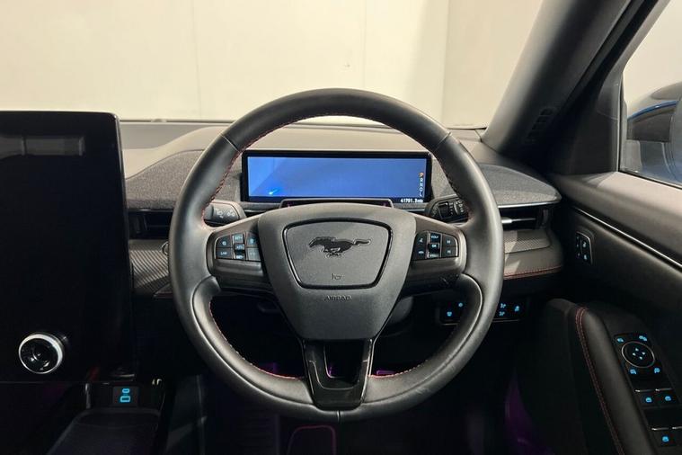 This 2023 Ford Mustang Mach E Extended Range is a superb example, having had only one owner from new and boasting a clear vehicle history check. As an electric vehicle, it offers an impressive battery total capacity of 99 kWh, providing a maximum range of 379 miles when new. Charging at home on a 7kW charger will take approximately 14 hours and 36 minutes for a full charge, while rapid public charging can take you from empty to 80% in just 51 minutes. This model also comes equipped with BLIS Blind Spot Information System with Cross Traffic Alert, a wireless device charging pad, a rear view camera for easier parking, LED reflector headlamps, and heated driver and passenger seats for added comfort. The exceptional 379 mile maximum range at new truly sets this Mustang Mach E apart, indicating its superior capability for longer journeys compared to many other electric vehicles. The inclusion of advanced safety features like BLIS and the convenience of wireless charging further enhance its appeal. This well maintained, single owner vehicle represents a compelling choice for anyone seeking a modern, capable, and efficient electric SUV.