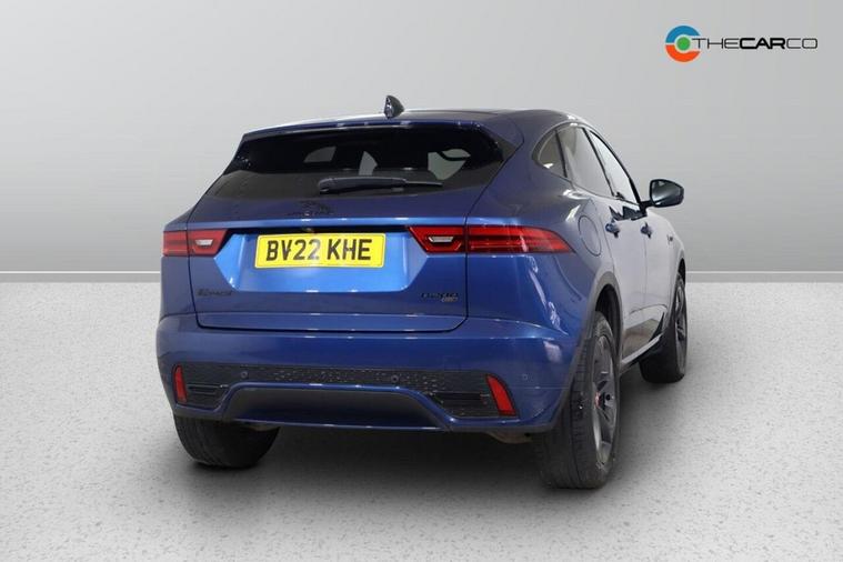 This 2022 Jaguar E-PACE D204 R-Dynamic Black is a superb example, having had only one owner since new. This stylish compact SUV boasts a powerful 2.0L diesel engine, delivering an impressive 0-60mph in just 7.9 seconds, all managed through a smooth automatic transmission and a capable four wheel drive system. As a Euro 6 compliant vehicle, it meets modern emissions standards. The R-Dynamic Black trim enhances the E-PACE's already striking appearance, and this particular model comes equipped with a host of desirable features. Enjoy effortless driving with automatic LED headlights that include signature daytime running lights, animated rear indicators, and auto high beam assist. For convenience and connectivity, it offers Android Auto integration and a fixed panoramic roof that floods the cabin with natural light. Parking is made simpler with the integrated rear camera. These features collectively demonstrate the superior specification of this Jaguar E-PACE compared to other vehicles in its class.