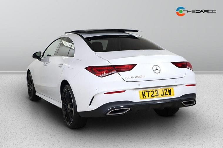 This 2023 Mercedes Benz CLA250e AMG Line Night Edition is a remarkable example, having had only one owner since new. This plug in hybrid model boasts a 1.3 litre petrol engine and meets Euro 6 emission standards. It comes equipped with the desirable KEYLESS GO Package for effortless entry and starting, and MULTIBEAM LED headlamps with Adaptive Highbeam Assist for superior visibility. The Parking Package, including front and rear sensors and a rear camera, makes manoeuvring simple, while THERMOTRONIC luxury automatic climate control ensures a comfortable cabin environment. Automatic headlamp activation is also included for your convenience. The AMG Line Night Edition trim enhances the already stylish CLA, offering a premium feel. The combination of its plug in hybrid technology, advanced lighting systems, and comprehensive parking assistance highlights how this vehicle offers a more refined and convenient driving experience compared to other models in its class. This Mercedes Benz CLA represents a sophisticated choice for those seeking efficiency and advanced technology.