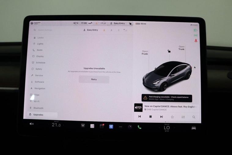 This 2021 Tesla Model 3 Standard Range Plus presents a superb ownership opportunity, having been meticulously maintained by just one owner since new. As an electric vehicle, it boasts a 53 kWh battery offering an impressive maximum range of 278 miles when new. Charging is convenient, with a full charge at home taking approximately 7 hours and 10 minutes using a 7kW charger, while rapid public charging can replenish the battery from empty to 80% in as little as 29 minutes. This Model 3 also comes equipped with a suite of advanced features, including Park Assist Camera and Front Parking Sensors for effortless manoeuvring, a fixed panoramic glass roof to enhance the cabin's sense of space, and inductive charging mats for two smartphones. The interior comfort is further elevated by the 2 zone climate control, ensuring a pleasant environment for all occupants. Beyond its technological advancements, this Tesla Model 3 offers substantial practicality, highlighted by its large boot space, making it ideal for everyday use and longer journeys alike. These features collectively demonstrate how this particular Model 3 stands out, offering a refined and convenient electric driving experience.