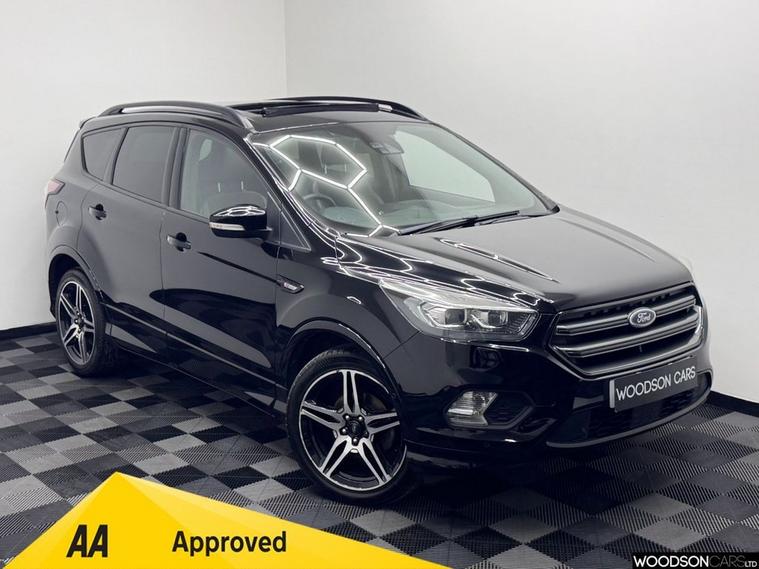 ** 1 Previous Owner ** ** Finance Soft Search Pre Approval ** This Ford Kuga 1.5T EcoBoost ST-Line SUV Petrol Manual Euro 6 (150bhp) has covered 61, 000 miles in Black with Heated Black half interior. 1 Previous Owner, Sat Nav, Apple Car Play, Pan Roof, Heated Seats, Heated Steering Wheel, Dual Climate Control, AA Approved Dealer. *MAIN DEALER PART EXCHANGE* Warranty included. VOSA Mileage History Checked and HPI Clear. Vehicle has received an independent health check with report ++ Any inspection is more than welcome ++ Nationwide Delivery Service Available ++ Credit/Debit Card Accepted ++ Approved Finance Partner with Consumer Credit Licence ++ Call/Message anytime including evenings ++ Facetime/Video Call Available Around Your Schedule ++ Warranty Included. Late Night Appointments Available. Woodson Cars, Manchester. 01619702304 (For Sat Nav use Postcode M44 5AH)