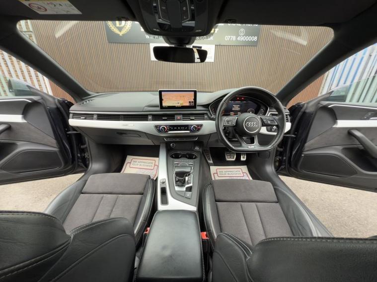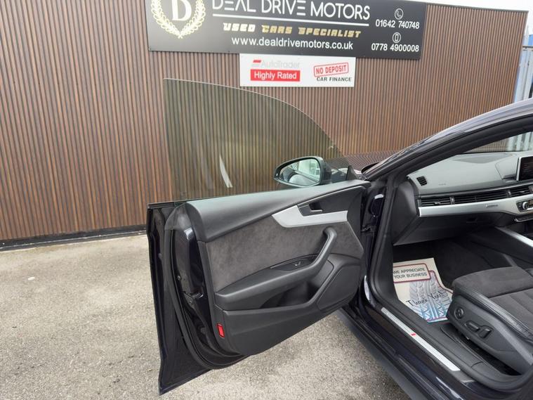 2017 Audi A5 2.0 TDI S line Sportback quattro S Tronic 190 PS Available now at DealDrive Motors. This Audi A5 S line Sportback combines dynamic performance, refined design, and upgraded styling in one elegant package. Powered by a 2.0-litre TDI engine producing 190 PS, it accelerates from 060 mph in just 7.1 seconds, with power delivered confidently through Audis renowned quattro all-wheel drive system. Fully Euro 6 / ULEZ compliant, it provides both efficiency and capability for any journey. Enhancing its presence, this example features an RS5-style honeycomb grille, black boot emblem, and rear tinted windows, giving it a sportier and more assertive road stance. The S line trim further adds sport suspension, distinctive body styling, and 18-inch alloy wheels, underlining its performance pedigree. Inside, the A5 offers leather/Alcantara sports seats, three-zone climate control, and S line detailing throughout. The S Tronic automatic gearbox ensures smooth, responsive shifts, while features like Bluetooth connectivity, DAB digital radio, and Audi Drive Select enhance every drive. Presented in excellent condition with a clear HPI history, this Audi A5 S line Sportback quattro blends premium comfort, performance, and custom style a standout example of Audi engineering and design. Ownership Highlights: Power: 190 PS 060 mph: 7.1 sec Transmission: S Tronic Auto | Diesel Drive: quattro AWD Economy: up to 58 mpg (approx.) Emissions: Euro 6 | ULEZ Compliant Visual Upgrades: RS5 Grille | Tinted Windows | Black Badge