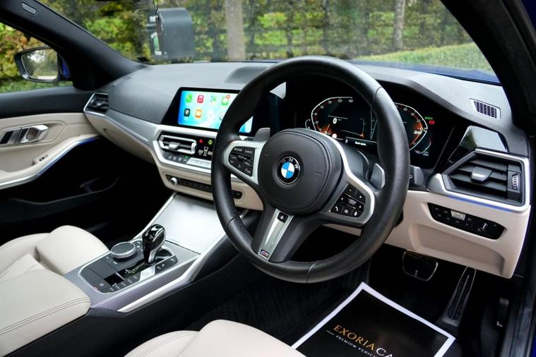 Exoria Cars are pleased to offer this BMW 3 SERIES 2.0 320i M Sport Touring 5dr Petrol Auto Euro 6 (s/s) (184 ps) registered in 03/03/2022. This particular model is presented in Portimao Blue featuring 19in Alloy Wheels - M Light Double Spoke - 791M Bicolour Jet Black with Runflat Tyres. This vehicle has many optional spec extras. These include (but are not limited to) Panoramic Glass Sunroof, M Sport Pro Package, Comfort Plus Package, Fully Electric & Memory Seats, Heated Seats, Vernasca Leather - Oyster with Grey Stitching, Steering Wheel - Heated, Heated Seats, Electric Folding Mirrors, active safety features and much more. FULL BMW SERVICE HISTORY. 1 OWNER from new. For full details please do enquire via email or phone or visit our website dealer's website This vehicle comes with 2 keys, a full (clear) HPI check and a 6 month warranty with Autogaurd. All 5* reviews on all platforms giving you peace of mind with your new purchase! PCP and HP finance available from 9.9% APR (subject to status). AA Checks/RAC Checks are welcome! Any used car purchase also qualifies for a free interior and exterior deep clean detail worth £400 with our partnered company DD Detailing who are one of the largest detailing companies in the UK. This vehicle is ready to drive away today!