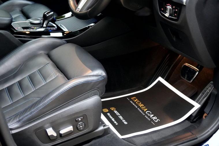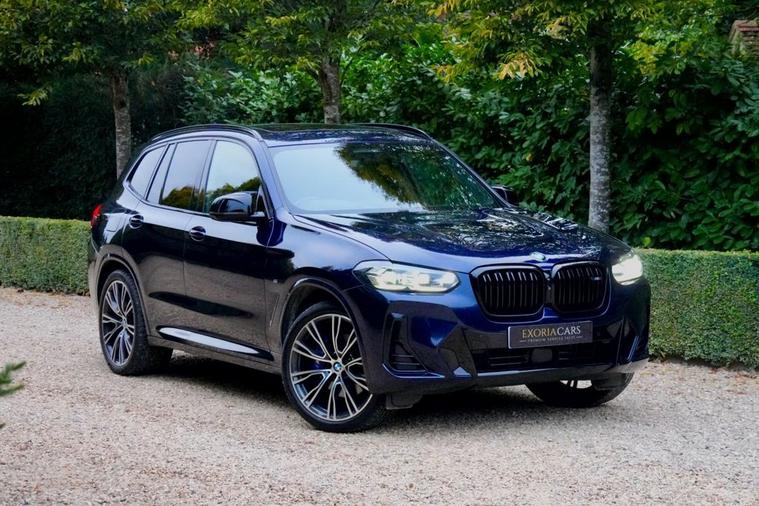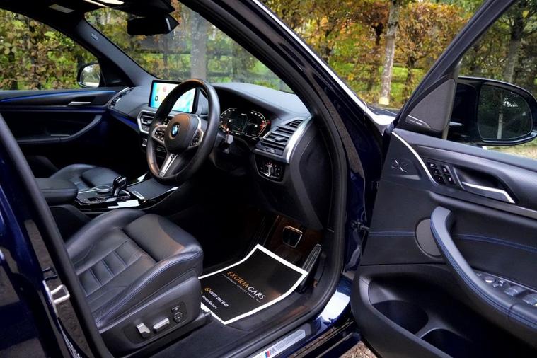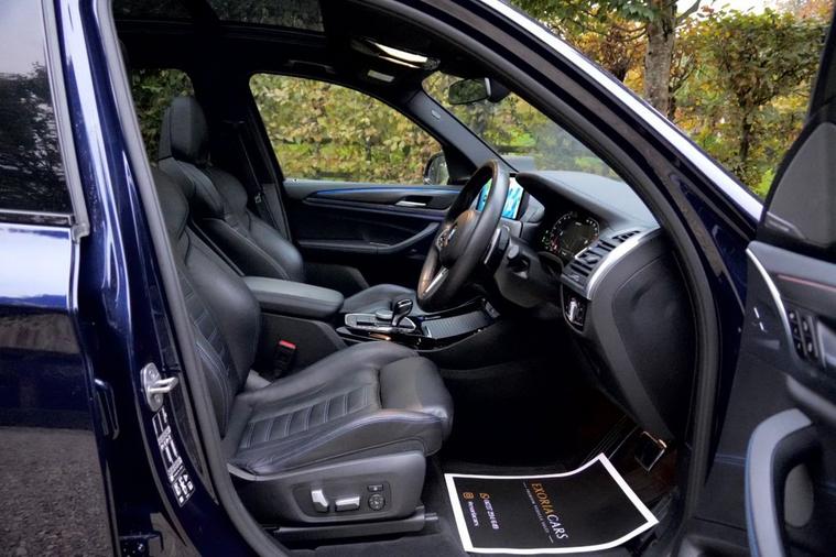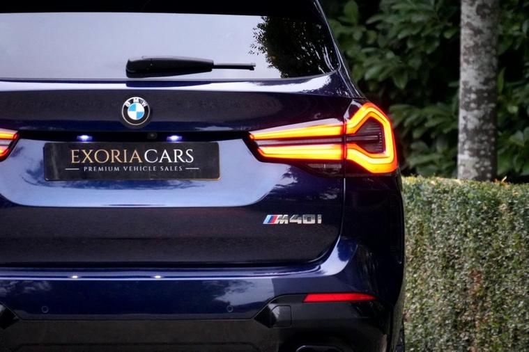Exoria Cars are pleased to offer this BMW X3 3.0 M40i MHT SUV 5dr Petrol Hybrid Auto xDrive Euro 6 (s/s) (360 ps) registered on the 10/11/2021. This particular model is presented in Tanzanite Blue featuring 21in Alloy Wheels - 718 M Double-Spoke Bi-Colour with Run-Flat Tyres. This vehicle has many optional spec extras. These include (but are not limited to) Panoramic Glass Sunroof, Harman Kardon Surround Audio Sound System, Comfort Pack, Technology Plus Pack, Fully Electric & Memory Seats, Driving Assistant Professional (Adaptive Cruise), Heads Up Display, Gesture Control, Parking Assistant Plus, 360* 3D Camera, Adaptive Headlights, Heated Steering Wheel, Additional Storage Compartment Ambient Lighting, Electric Folding Mirrors, Wireless Apple Car Play/Android Auto, active safety features and much more. FULL BMW Service History. For full details please do enquire via email or phone. This vehicle comes with 2 keys, a full (clear) HPI check and a 6 month warranty when purchasing this vehicle. All 5* reviews on all platforms giving you peace of mind with your new purchase! AA Checks/RAC Checks are welcome! Any used car purchase also qualifies for a free interior and exterior deep clean detail worth £400 with our partnered company DD Detailing who are one of the largest detailing companies in the UK. This vehicle is ready to drive away today! PCP and HP finance available from 9.9% APR (subject to status)