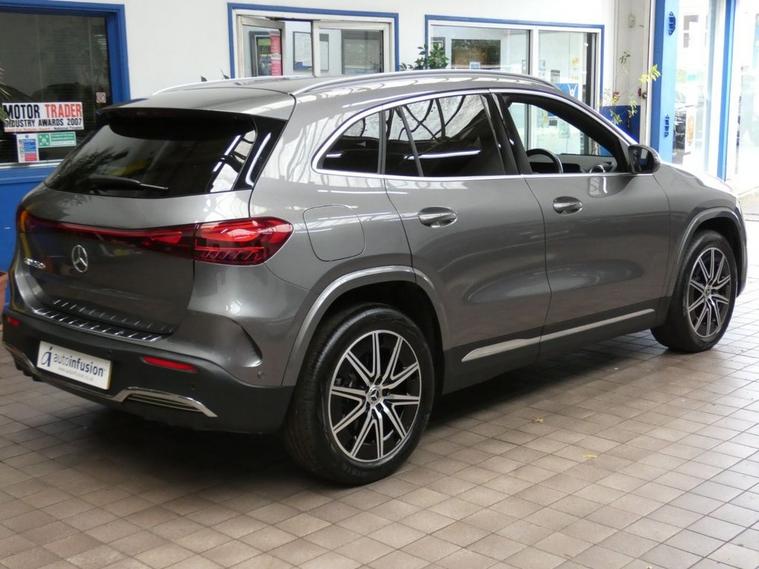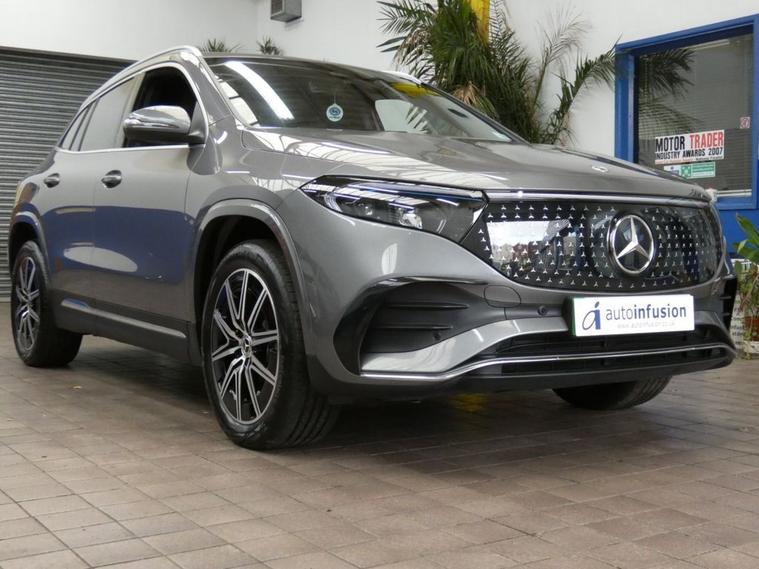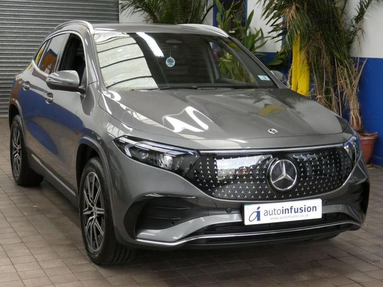 This 2024 Mercedes Benz EQA 250+ AMG Line (Exceutive) has had only one owner from new and boasts a clear vehicle history. Service history 1 service at 8, 615 miles Sept 2025. First Mot due Sept Dec 2027. Mercedes warranty till Sept 2027.As an all electric vehicle, it offers a compelling blend of luxury and sustainable motoring. The AMG Line trim enhances its sporty appeal, while the Excutive designation signifies a high level of specification, including blind spot monitoring, rear view camera, Smartphone integration android apple carplay, part leather interior, heated seats, cruise control, parking sensors. As an all electric model, it boasts a substantial 78 kWh battery, providing an impressive maximum range of 319 miles. Charging is convenient, with a full charge at home using a 7kW charger taking approximately 11 hours and 56 minutes, and rapid public charging can replenish the battery from empty to 80% in as little as 40 minutes. These charging capabilities, combined with its impressive range and single owner provenance, position this EQA as an excellent choice for those seeking an efficient and well maintained electric vehicle. Autoinfusion Ltd, is a family run business with over 30 years motoring experience. On our website you will find our vehicles are generally advertised with upto 100 exterior and interior pictures, 360 interior images, exterior panoramic views and web video showcasing our stock. As an AA approved garage, prior to sale, the majority of our vehicles are inspected by an AA trained technician and pass a full 128 multi-point AA inspection, these cars are highlighted on our website with the AA logo. Please note AA inspections are also available on request if the vehicle has not yet been inspected. All of our stock is constantly price checked ensuring you pay and receive the best package. You will also find details of special promotions on our website. Contact us to book an appointment for a viewing and test drive. We can conduct a live viewing of the vehicle to your mobile device or send you a personalised video highlighting the key features or anything else you may require, which can be viewed in your own time. With our Finance options we can provide class leading packages and rates. We highly recommend you reserve this car on-line , please visit dealer's website or call one of our sales specialists for more information. We look forward to welcoming you to Autoinfusion.