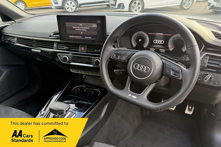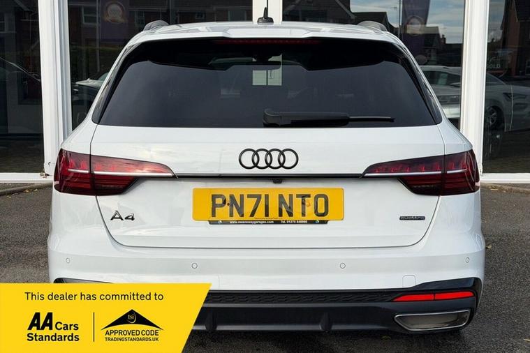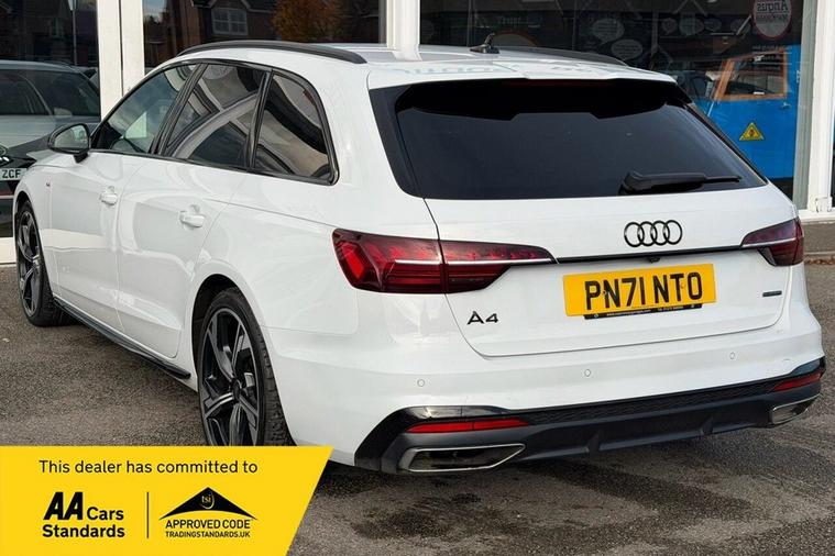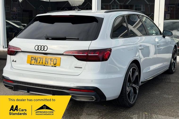 This 2021 Audi A4 Avant TDI Black Edition boasts a full dealership service history and has had only one owner, ensuring excellent provenance. This Euro 6 compliant, four wheel drive estate features a 2.0 litre diesel engine and benefits from an MOT valid until October 2026. The vehicle has a clear history check and its last service was completed on 2025-08-14 at 41, 579 miles. Notable features include the Audi Smartphone Interface with Android Auto and Apple CarPlay, a rear view camera with parking assistance, and automatic LED headlights with dynamic rear indicators. Comfort is enhanced by the deluxe 3 zone electronic climate control and the light and rain sensor. The Audi A4 Avant TDI Black Edition offers a compelling blend of performance and technology. Its acceleration from 0-60mph in just 7.1 seconds highlights its dynamic capability, setting it apart from many other vehicles in its class. This impressive performance, combined with the advanced features and comprehensive service history, makes this Audi A4 Avant a well maintained and desirable choice. A 3 month warranty is also included for your peace of mind. ========= Specification: 19 Audi Sport Alloy Wheels Diamond Cut Audi Virtual Cockpit MMI Navigation Plus with Touch Rear-View Camera + Parking System Plus Heated Front Sports Seats Flat-Bottom Leather Multi-Function Steering Wheel LED Headlights with Dynamic Rear Indicators Audi Smartphone Interface + Alexa Integration Deluxe 3-Zone Electronic Climate Control Keyless Go Cruise Control with Speed Limiter Sport Suspension + Audi Drive Select Titanium Black Styling Pack & Privacy Glass Electric Power Tailgate LED Interior Lighting Pack + Ambient Trim ========= Service History: 15/11/2022 - 13, 366 miles - Audi 10/11/2023 - 22, 125 miles - Audi (Longlife) We will be carrying out a service ready for the new owner to drive it away! Further work: 14/08/2025 - 41, 579 miles - Gearbox Oil - Audi =========