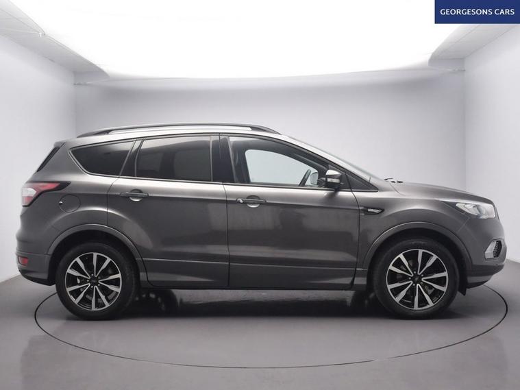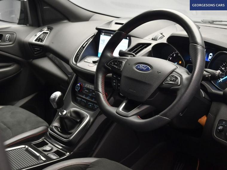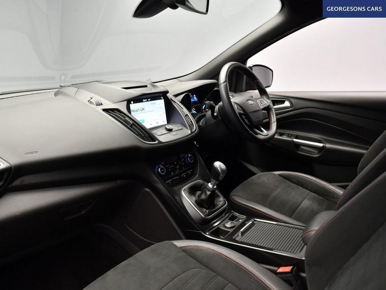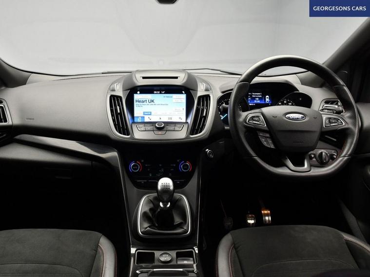 This Ford Kuga 1.5T EcoBoost ST-Line combines a responsive 1.5-litre turbo petrol engine with 150hp, delivering 0-62mph in 9.7 seconds and up to 42.8mpg in this front-wheel-drive setup with a precise 6-speed manual transmission. The ST-Line trim enhances the sporty appeal with aggressive styling, and a dynamic chassis for engaging SUV performance. With four services, including three at Ford dealers, and 58, 916 miles, this Kuga is in exceptional condition. Navigate effortlessly with integrated satellite navigation, Apple CarPlay, Bluetooth, and DAB radio, ensuring seamless connectivity on every journey. Parking is a breeze thanks to the parking sensors and park assist, providing clear visibility and confidence in tight spaces. Stay comfortable with dual-zone climate control, offering personalized cooling year-round, and a heated windscreen for quick defrosting. Cruise control with speed limiter enhances safety and relaxation on highways. Selectable drive modes provide tailored performance, whether for efficiency or dynamic driving. The spacious five-door SUV design includes a 456-litre boot for practicality.