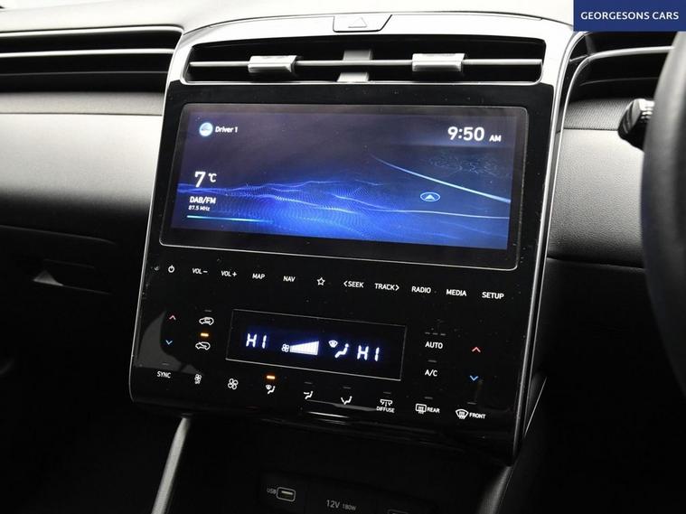 The Hyundai Tucson 1.6 T-GDi SE Connect combines a responsive 1.6-litre turbo petrol engine with 150hp, delivering 0-62mph in 10.3 seconds and up to 44.1mpg in this front-wheel-drive setup with a precise 6-speed manual transmission. The SE Connect trim offers stylish practicality with 17-inch alloy wheels and a spacious interior for versatile family motoring. With one owner and four services, this Tucson is in excellent condition. Navigate effortlessly with integrated satellite navigation, Apple CarPlay, Bluetooth, and DAB radio, ensuring seamless connectivity on every journey. Parking is a breeze thanks to the parking sensors, providing confidence in tight spaces. Stay comfortable with dual-zone climate control and air conditioning, offering personalized cooling year-round. Cruise control with speed limiter enhances relaxation on highways, while lane assist boosts safety on varied routes. The spacious five-door SUV design includes a 620-litre boot for practicality.