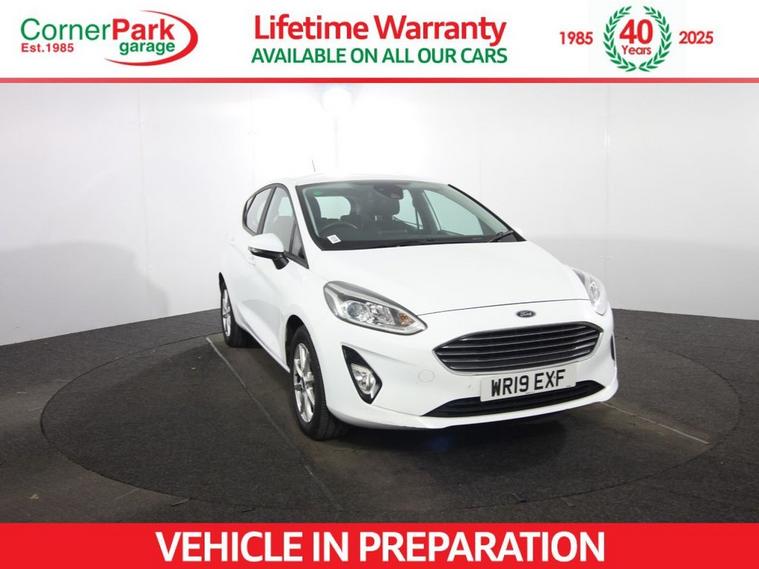 1 Owner. Discover the 2019 Ford Fiesta 1.0T EcoBoost GPF Zetec, a well-rounded 5-door petrol hatchback that offers a perfect blend of style, technology, and efficiency. Finished in Frozen White with 15-inch 8-spoke alloy wheels and body-coloured bumpers, door handles, and heated electric door mirrors, this Euro 6 manual model boasts a sharp front grille trimmed in chrome and distinctive LED daytime running lights with halogen projector headlights. Powered by a responsive 1.0-litre turbocharged EcoBoost engine producing 100ps, the Fiesta delivers agile handling and impressive fuel economy enhanced with stop-start technology and Fords Easy-Fuel capless refuelling system. The interior features manual air conditioning, a 7-inch touchscreen with Ford SYNC for DAB radio, Apple CarPlay, and Android Auto, plus a 3-spoke leather-trimmed steering wheel with audio controls and illuminated glovebox. Spaciousness and practicality are emphasized with 60-40 split rear seats, rear privacy glass, rear spoiler with centre high-mounted brake light, and dual cup holders in the centre console. Safety is comprehensive with multiple airbags including front, side, and curtain, ABS with electronic brakeforce distribution, enhanced stability control, emergency brake assist, hill start assist, rear fog lamps and lights, tyre pressure monitoring system, MyKey system, and Thatcham Category 1 alarm. Convenience features include remote central locking with double locking, rear wiper, trip computer, and headlight automatic on-off functionality. The 2019 Ford Fiesta Zetec is an ideal choice for drivers seeking a modern, safe, and efficient supermini with strong technology offerings.