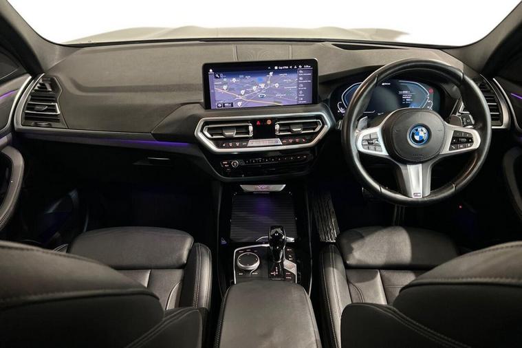 This 2022 BMW X3 30e M Sport is a superb example, having had only one owner from new and boasting a clear vehicle history check. This four wheel drive plug in hybrid SUV features a 2.0 litre petrol engine and meets Euro 6 emissions standards. Inside, youll find luxurious Vernasca leather upholstery in black with grey stitching, complemented by a Technology Package that includes a Head Up Display. The M Sport Pro Pack further enhances its appeal, alongside striking 20 inch M Double Spoke Style 699 alloy wheels in Jet Black. For effortless manoeuvring, it comes equipped with a Parking Assistant, complete with front and rear sensors and a rear camera. The performance of this X3 is truly impressive, accelerating from 0 to 60mph in just 6.1 seconds, demonstrating its dynamic capabilities. This swift acceleration, combined with the advanced technology and premium M Sport trim, sets this particular X3 apart from other vehicles in its class. It offers a compelling blend of efficiency from its plug in hybrid system and the engaging driving experience expected from a BMW, all within a practical and stylish SUV body.