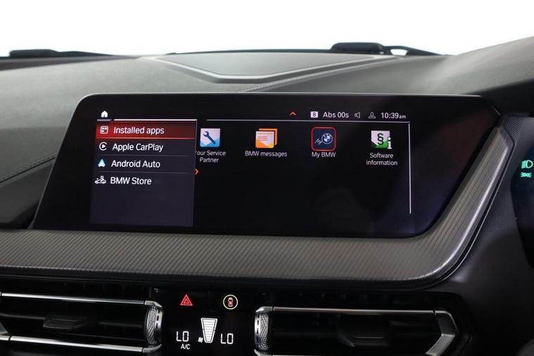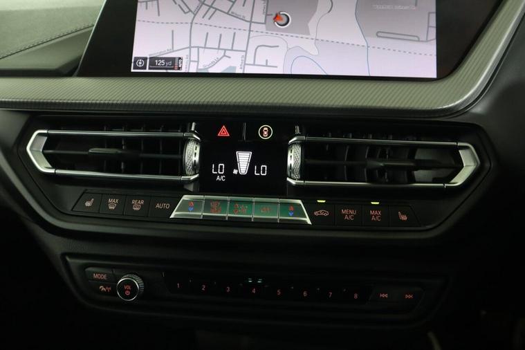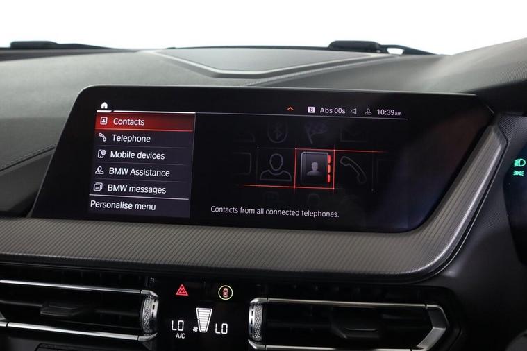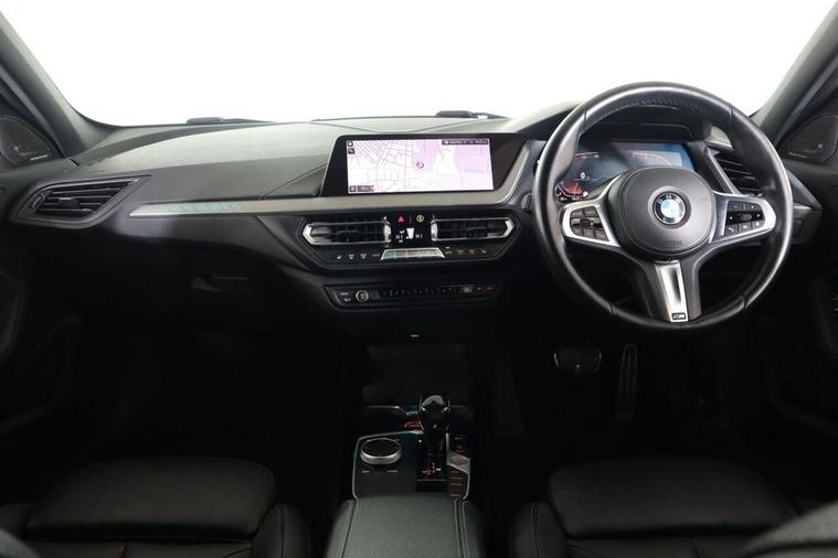 This 2020 BMW 1 Series 118i M Sport is a superb example of German engineering, offering a premium driving experience. Finished in the sporty M Sport trim, this petrol model boasts a 1.5 litre engine and meets Euro 6 emissions standards. Inside, you'll find the comfort of Perforated Dakota Leather in Black with Grey Highlight, complemented by the advanced BMW Live Cockpit Professional and the Tech Pack II, which includes Bluetooth connectivity and a premium branded sound system. Further enhancing convenience are the dual-clutch automatic transmission and enhanced Bluetooth with wireless phone charging. This BMW 1 Series is designed to impress, with a brisk 0-62mph acceleration time of just 8.5 seconds, demonstrating its responsive performance. The generous boot space ensures practicality for everyday use and longer journeys. Its low CO2 emissions also indicate a more environmentally conscious choice compared to many other vehicles in its class.