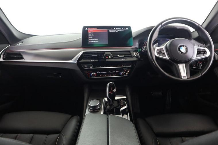 This 2021 BMW 520d M Sport is a superb example, having had only one owner since new. It boasts a powerful and efficient 2.0L Diesel Hybrid engine, meeting the Euro 6 emission standards. The M Sport trim enhances its sporty appeal, complemented by the desirable M Sport Pro Package. You'll find comfort and convenience with front seat heating and dual zone automatic climate control, while the rain sensor automatically activates the headlights for you. This BMW 5 Series is equipped with striking 20 inch M Light Y-spoke style 846 Bicolour Jet Black alloy wheels, fitted with mixed and run flat tyres, setting it apart from other vehicles. Its generous boot space offers practicality for all your needs, making it an excellent choice for both daily commutes and longer journeys.