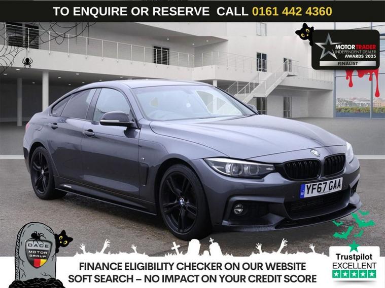 THIS BMW 4 SERIES GRAN COUPE 420d M SPORT IS FINISHED IN A STUNNING MINERAL GREY AND BLACK LEATHER INTERIOR. IT COMES WITH FULL BMW SERVICE HISTORY, HEATED FRONT SEATS, PRO NAVIGATION, 18 ALLOYS, PRIVACY GLASS, CRUISE CONTROL, FRONT AND REAR PARKING SENSORS, AUTOMATIC LIGHTS, DAB DIGITAL RADIO, MULTI FUNCTION STEERING WHEEL, DUAL CLIMATE CONTROL, AIR CONDITIONING, ELECTRIC WINDOWS, ELECTRIC DOOR MIRRORS, RAIN SENSING WIPERS. F I N A N C E A V A I L A B L E - *** NOT SURE YOURE ELIGIBLE FOR CAR FINANCE? *** CHECK TODAY USING OUR FREE CAR FINANCE CHECKER ON OUR WEBSITE.*** Dace Motor Group have a dedicated team of finance experts waiting to help with your enquiry. Over the past 30 years we have forged relationships with the countrys largest and best finance houses. We are specialists in Hire Purchase (HP), Personal Contract Purchase (PCP) as well as assisting those with poor credit or previous credit problems - A B O U T U S - At Dace German Car Centre, we are very proud to have been named the first Trading Standards Approved Car Retailer, with process and procedures developed with and applauded by them. We do recommend that customers RESERVE their choice of vehicle prior to making their trip, to avoid potentially missing the car. Visit our website https:/ dealer's website At Dace German Car Centre Stockport we carry over 700 cars in group stock TO ENQUIRE OR RESERVE PLEASE CALL | 01616232259 W A R R A N T Y A V A I L A B L E - With effect from the 1st May 2024 the Warranty Solutions Group will be providing their highest level of national warranty cover on all of our cars + 3 MONTHS WARRANTY FREE + EXTENDED WARRANTIES AVAILABLE - A D V E R T A C C U R A C Y - Although we make effort to ensure the description of our vehicles is accurate, mistakes can happen. We are human after all! So, whether it is the exact specification of a vehicle you need clarifying, the service history dates and mileages, even the colour shade please speak to a member of our sales team and they will happily confirm all you need to know about this car. PLEASE NOTE our adverts can never be cited as the reason you have brought a car incorrectly, as no purchase can be completed without the customer physically examining the car. As such, the physical viewing and documentation provided for the vehicle is deemed to be the basis for the sale, not an advertisement that may on occasion contain an error. -