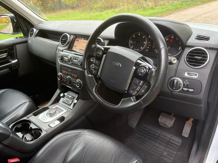 2016 discovery 4 3.0 SDV6 landmark 8 speed auto in yulong white with full black leather and piano black trims the seats are both electrically movable and heated , heated screen , heated steering wheel , fridge , Bluetooth, reverse camera , 7 seater, sat nav, dab radio , keyless entry , rear entertainment , panoramic roof , 20 alloys , tinted glass , extended roof rails , low tax bracket , service history , euro 6 ulez
