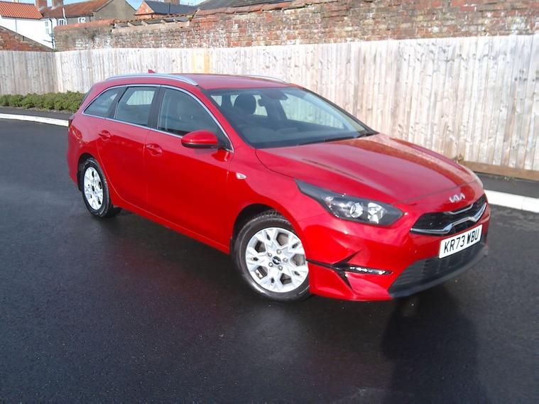This 2023 Kia Ceed T GDi 2 Estate is finished in Infra Red Metallic with charcoal cloth interior and has only 12, 700 miles with full service history by its one former keeper. This well maintained example features a responsive 1.5 litre petrol engine (158bhp), meeting Euro 6 emissions standards. Practicality is a key strength, with generous boot space designed to accommodate your needs. For added convenience, it comes equipped with a reversing camera system complete with dynamic guidelines and rear parking assistance, cruise control with speed limiter, Air conditioning, Apple Carplay with Android Auto connection, automatic headlights that adjust to ambient light conditions, and Bluetooth for seamless phone integration. It has full service history records and we are pleased to include a further service within our advertised price. The Kia Warranty runs until November 2030! The Kia Ceed T GDi 2 offers a compelling blend of efficiency and performance. Its fuel economy is a notable highlight, achieving an impressive 50 miles per gallon, which indicates it is more economical than many other vehicles in its class. Furthermore, its low CO2 emissions are also a significant advantage, suggesting a more environmentally friendly choice. This model also benefits from a low insurance group, meaning lower running costs for owners. When it comes to performance, the 0 to 60 miles per hour acceleration is brisk, achieved in just 8.6 seconds, demonstrating its capable 1.5 litre engine. We are happy to take your part exchange and guarantee to give you the best price possible for your car. Thinking of car finance? We work with leading companies to source the best deal for you. With a simple, straight forward application, please ask us for a quotation to see just how affordable this car could be. This Kia Ceed Estate has just arrived here at the Showroom and is available to view and test drive. We have flexible opening hours so please do give us a call on 01653952409 and we can arrange a convenient time for you. We look forward to hearing from you!