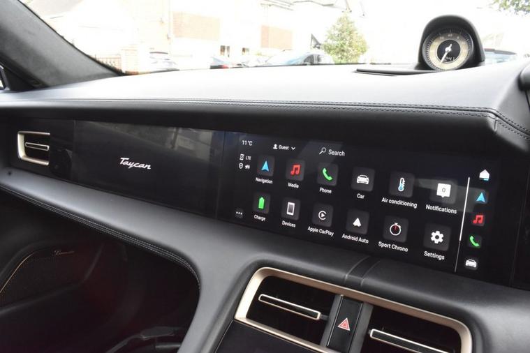 This 2020 Porsche Taycan Performance Plus Turbo presents an exceptional opportunity with its remarkably low mileage of just 14, 600 miles. As a fully electric vehicle, it offers a compelling blend of performance and advanced technology. This four wheel drive model boasts a substantial 93 kWh battery, providing a maximum range of 281 miles when new. Charging is convenient, with a full charge at home taking approximately 13 hours and 30 minutes using a 7kW charger, while rapid public charging can replenish the battery from empty to 80% in as little as 25 minutes. The vehicles MOT is valid until April 2026, offering peace of mind. Experience the thrill of instant acceleration with the Taycans impressive 0-60mph time of just 3.2 seconds, a figure that truly sets it apart from many other electric vehicles. This exceptional performance is complemented by a suite of premium features designed to enhance every journey. Navigate with ease using the 3D Surround View with Active Parking Support and a 360 Degree Camera. The LED Matrix Main Headlights in Glacier Ice Blue, incorporating Porsche Dynamic Light System Plus, ensure optimal visibility. Immerse yourself in sound with the Burmester High-End 3D Surround Sound System. Inside, the Steering Wheel Trim in Matt Carbon and Race-Tex, complete with heating, adds a touch of sportiness, while the Head Up Display keeps essential information within your line of sight.