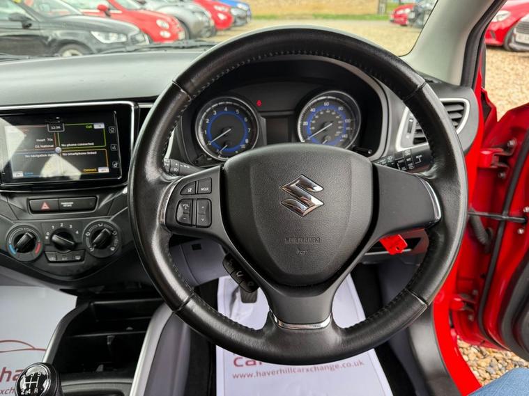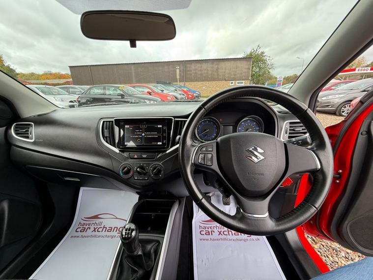 ONLY £20 A YEAR ROAD TAX+LONG MOT UNITL 14.09.2026+SERVICE HISTORY CONSISTING OF X8 SERVICES, LAST SERVICED @85, 607 MILES- 09.09.2025+SATELLITE NAVIGATION SYSTEM+DAB DIGITAL RADIO+BLUETOOTH+AIR-CONDTIONING+AUTOMATIC HEADLIGHT ACTIVATION+PARKING ASSISTANC WITH PARKING CAMERA+FIRE RED PAINT+16 INCH ALLOY WHEELS. At Haverhill Car Xchange we would like to offer you our Suzuki Baleno SZ-T Hatchback which has been finished in a Race Red paint with Black cloth upholstery. Specification Includes Satellite Navigation, DAB Digital Radio, Bluetooth, Smartphone Linkage Display, USB and AUX Connections, 12 Volt Accessory Socket, Air-Conditioning, Gear Shift Indicator, Electric Windows, Body Coloured Bumpers/Door Handles/Door Mirrors and Rear Roof Spoiler, Chrome Tailgate Trim, Automatic Headlight Activation, LED Daytime Running Lights, Guide Me Home Headlight Function, Front Fog Lights, High Mounted Rear Break Light, Parking Assistance with Parking Camera, 3-Spoke Leather Steering Wheel, 16 Inch Alloy Wheels, Rear Privacy Glass, Power Steering, ABS Breaking System, Childproof Rear Door Locks, Airbags, Alarm, Immobiliser, Remote Central Locking and ISOFIX Anchorage Points for Child Seats.