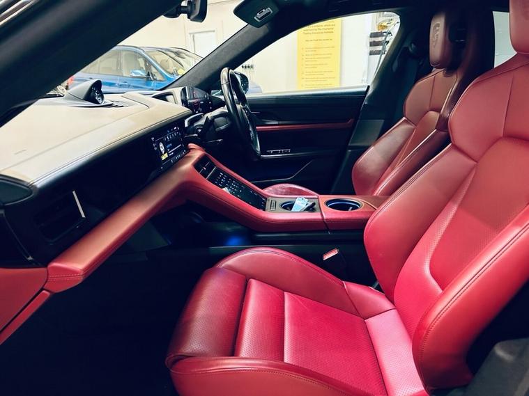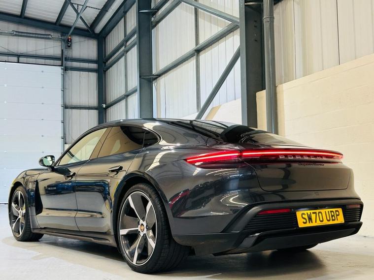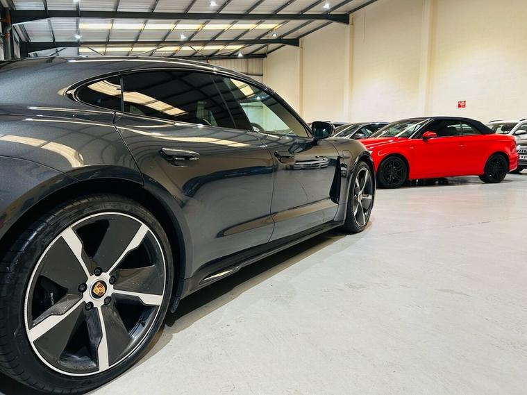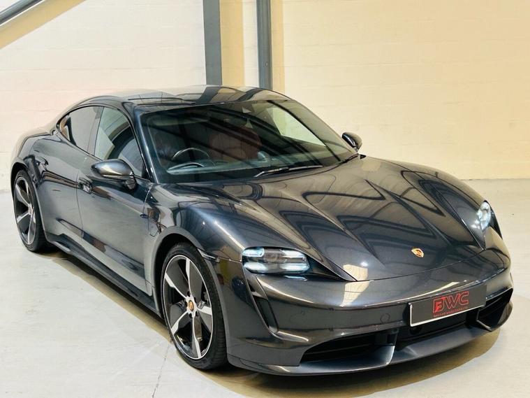 Porsche Taycan Performance Plus 93.4kWh Turbo Saloon 4dr Electric Auto 4WD (680 ps) Registration: SW70UBP | 93, 000 miles | Finished in Volcano Grey | Full Dealer Service History | Porsche Warranty Until March 2026 (Extendable) A stunning Porsche Taycan Turbo finished in Volcano Grey, backed by Full Dealer Service History and Porsche Manufacturer Warranty until March 2026 with the option to extend for additional peace of mind. Specified with over £15, 000 of factory-fitted extras, this Taycan delivers exceptional electric performance, luxury and cutting-edge technology. Powered by the Performance Plus 93.4kWh battery and dual-motor 4WD system producing 680 ps, it accelerates with supercar levels of performance while remaining fully electric and ULEZ compliant. Featuring the highly desirable Sport Chrono Package, Porsche InnoDrive with Adaptive Cruise Assist, 21 Exclusive Design carbon Aeroblade alloy wheels and LED Matrix headlights, this is one of the most comprehensively specified Taycan Turbo models available. Key Features Performance Plus 93.4kWh battery producing 680 ps Dual-motor 4WD electric drivetrain 0-62 mph in approx. 3.2 seconds Fully electric Zero emissions ULEZ compliant Porsche Warranty until March 2026 (extendable) Sport Chrono Package for enhanced driving dynamics Porsche InnoDrive with Adaptive Cruise Assist Premium interior with advanced infotainment and connectivity Factory-Fitted Optional Equipment Porsche Electric Sport Sound Porsche Surface Coated Brakes (PSCB) Calipers in Black 21 Taycan Exclusive Design Alloy Wheels with Carbon Aeroblades Exterior mirrors and trims in Volcano Grey Model designation painted Black / Black Matt Porsche crest on centre console storage lid and headrests Porsche logo LED door courtesy lights Powered charging port cover Privacy glass & high-gloss black side window trims SportDesign side skirts 4+1 seating configuration Ambient lighting Heated steering wheel Home Energy Manager 150kW DC on-board booster LED Matrix headlights in Glacier Ice Blue with PDLS+ Mobile Charger Connect ParkAssist including reversing camera Porsche Charging Dock - Wall Box Porsche InnoDrive including Adaptive Cruise Assist Public charging cable (Mode 3) Sport Chrono Package Additional Information 93, 000 miles covered Full Dealer Service History Porsche Warranty until March 2026 with option to extend Total value of factory-fitted extras: £15, 569 ULEZ compliant and zero road tax Ultra-fast charging capable Exclusive, high-performance electric sports saloon