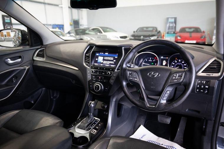 This 2016 Hyundai Santa Fe CRDi Wiggins Edition boasts a clear vehicle history, offering you peace of mind. This seven seat, four wheel drive model is powered by an efficient 2.2 litre diesel engine and meets Euro 6 emissions standards. It comes equipped with dual zone climate control, rear air conditioning, and heated rear seats, ensuring comfort for all passengers. The convenience of keyless entry and engine start, along with a blind spot detection system, further enhances the driving experience. The Wiggins Edition trim level of this Santa Fe provides a superior level of comfort and safety compared to other vehicles in its class. The inclusion of blind spot detection actively assists the driver, while the dual zone climate control and heated rear seats allow for personalised comfort for everyone on board. This well appointed Hyundai Santa Fe is designed to make every journey enjoyable and secure.