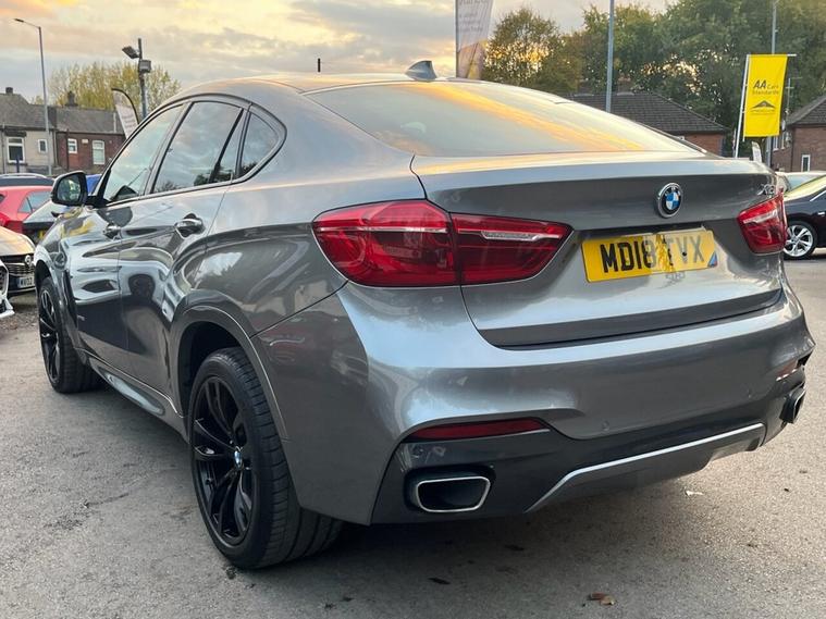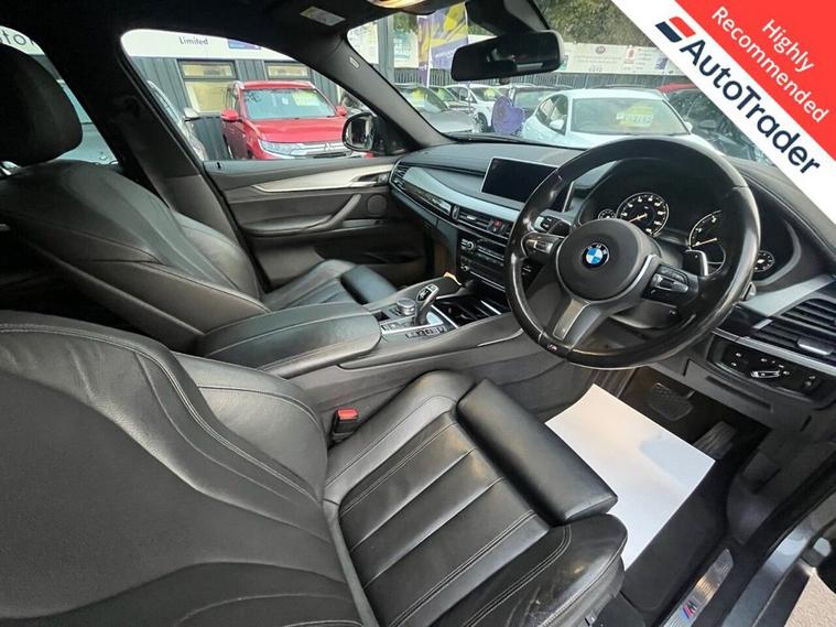 This 2018 BMW X6 40d M Sport boasts a full service history and a clear vehicle history check, offering you peace of mind. This impressive four wheel drive model is powered by a 3.0L Euro 6 diesel engine, capable of accelerating from 0-60mph in just 5.8 seconds. It comes with a 6 month warranty and a 12 month MOT provided on purchase. The M Sport trim level ensures a sporty aesthetic and driving experience, complemented by the M Sport Plus Package which includes a Head Up Display and a premium Harman Kardon sound system. Further enhancing your driving experience are features such as the Surround View camera system for effortless parking assistance and automatic two zone climate control for optimal comfort. With a substantial towing weight of 3500 kg, this BMW X6 is as practical as it is powerful. These notable features and strong provenance indicators demonstrate how this particular X6 stands out from other vehicles in its class.