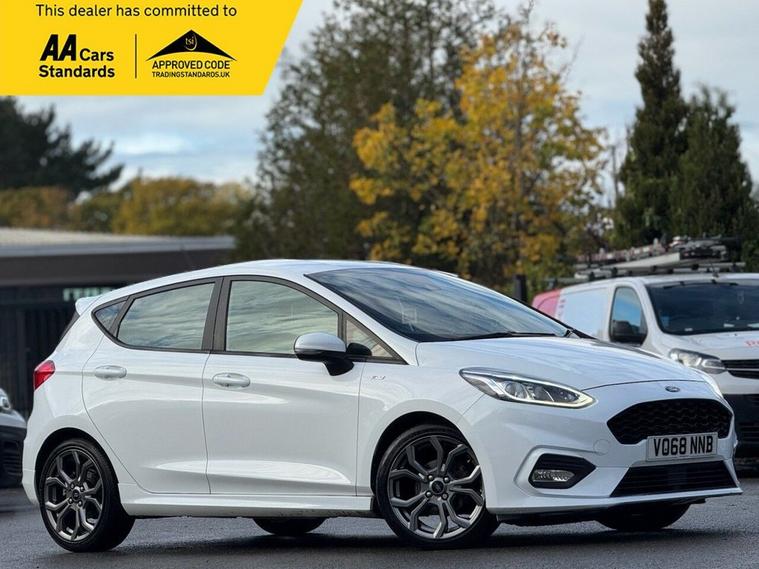 Here we have a Ford Fiesta 1.0 Petrol ST-Line Automatic finished in Frozen White having done 77k miles from new including the last service done less than 50 miles ago and a long MOT until October 2026 with no advisories. Both the Timing and Wet belt have been serviced, also comes with full 3 month warranty and free 12 month AA breakdown cover. Only has ever had 1 Owner in its history. The interior and exterior of the car have been looked after very well, it starts and drives perfectly with no issues at all. Being the top of the range spec this vehicle benefits from Rear Parking Sensors, Bluetooth, Automatic Climate Control and Aux/USB capability. The car will be sold with extendable Warranty. We also offer Part Exchange / Delivery / Finance, HPI report available on request. Please call us on 01215403191 for further enquiries. =============================================================================== Why not read our AutoTrader reviews to see what our customers think about their experience here and why they choose to buy from us? =============================================================================== Please contact our sales department for the latest finance offers on this vehicle. We have a dedicated team researching our used car prices daily to make sure we offer the best value cars in the market. =============================================================================== To arrange a personal viewing of this amazing car, or if you would like a tailored video to be emailed to you then please contact us. =============================================================================== Please give us a call for directions. Our postcode for Sat Nav direction is B25 8EL Finance subject to status, T&Cs apply.