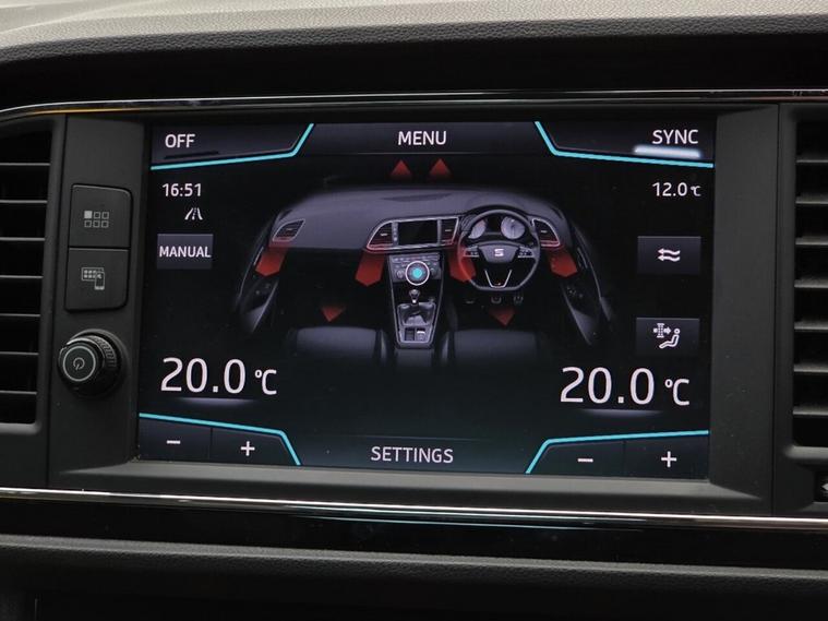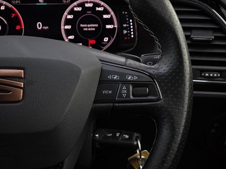 - Flat Bottomed-Perforated Leather Steering Wheel with White Stitching and CUPRA Logo