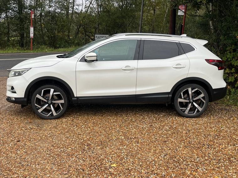 Here we have a Nissan Qashqai Tekna finished in white Equipped with sat nav, heated seats, reverse camera, panoramic roof, cruise control, Bluetooth & more. Call us today to arrange a test drive