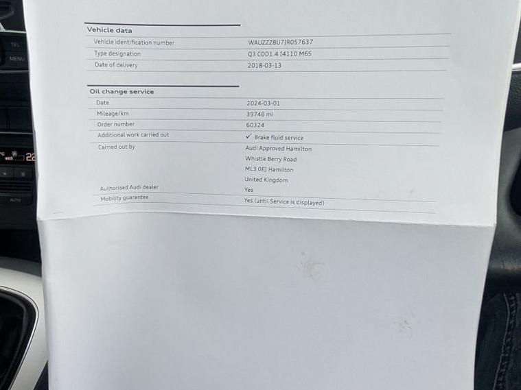 This 2018 Audi Q3 TFSI Sport boasts a clear vehicle history, offering you peace of mind. This stylish SUV is equipped with a 1.4 litre petrol engine and meets Euro 6 emissions standards. For your convenience, it features Xenon Plus headlights with LED daytime running lights, rear parking sensors, and a Bluetooth interface for seamless connectivity. The light and rain sensor automatically adjusts the headlights, while the dual-zone electronic climate control ensures comfort for all occupants. With an MOT valid until March 2026, this Q3 is ready for your journeys. Experience impressive efficiency with this Audi Q3, achieving a highlight of 51 miles per gallon, which indicates it performs better than many similar vehicles in its class. Its low CO2 emissions further contribute to its economical running costs. The 0-60mph acceleration in just 9.2 seconds demonstrates a responsive driving experience, showing how it offers a good balance of performance and efficiency compared to other cars.
