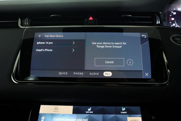 This 2021 Land Rover Range Rover Evoque P300e R Dynamic S boasts a single owner from new, offering excellent provenance. This stylish four wheel drive model features a 1.5 litre petrol plug in hybrid engine, meeting Euro 6 emissions standards. Inside, you'll find comfortable 12 way heated electric front seats with two way manual headrests, and dual zone climate control to keep everyone comfortable. For convenience, it includes Android Auto and LED headlights, enhancing your driving experience. The Evoque P300e R Dynamic S stands out with its impressive performance, accelerating from 0 to 60 miles per hour in just 6.1 seconds, demonstrating its dynamic capability. The advanced 3D surround camera system, complete with 360 degree, front, and rear parking sensors, provides exceptional visibility and makes manoeuvring effortless. These features collectively highlight how this Range Rover Evoque offers a superior blend of efficiency, technology, and driving pleasure compared to other vehicles in its class.