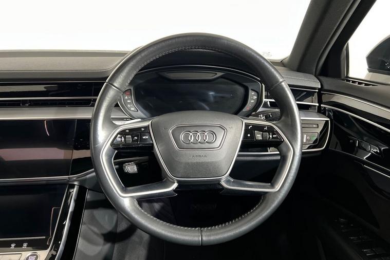 This 2021 Audi A8 TDI V6 Black Edition offers a superb blend of performance and luxury, boasting a powerful 3.0 litre diesel engine and Audis renowned four wheel drive system for confident handling in all conditions. As a Euro 6 compliant vehicle, it meets stringent emission standards. Inside, youll find the exceptional comfort of Comfort Contour Seats, complete with electric adjustment and memory functions for both driver and front passenger, ensuring a personalised driving experience. The Audi HD Matrix LED headlights provide superior illumination, while the convenience of a rear view camera aids parking. Stay connected and powered up with the Audi Phone Box, offering Bluetooth connectivity and wireless phone charging. The A8 TDI V6 Black Edition delivers an impressive 0-60mph acceleration time of just 5.9 seconds, showcasing its dynamic capabilities. This performance, combined with its substantial boot space, makes it a practical yet exhilarating choice. The inclusion of features like the memory seats and advanced lighting systems clearly sets this Audi A8 apart from other vehicles in its class, offering a more refined and convenient ownership experience.
