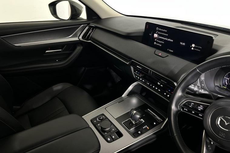 This 2022 Mazda CX-60 e-SKYACTIV Homura is presented with a clear vehicle history check, offering peace of mind for its next owner. This Four Wheel Drive model features a 2.5L Petrol Plug-in Hybrid engine, meeting Euro 6 emissions standards. The Homura trim level includes the Mazda Driver Personalisation System with seat memory, Emergency Lane Keeping with Blind Spot Assist, and dusk sensing headlights. For seamless connectivity, it offers wireless Apple CarPlay and wired Android Auto, alongside heated front seats with three stage settings. The Mazda CX-60 Homura stands out with its impressive performance, accelerating from 0 to 60mph in just 5.8 seconds, demonstrating its capability compared to other vehicles in its class. This impressive acceleration is complemented by a substantial towing weight of 2500 kg, making it a versatile choice for various needs.