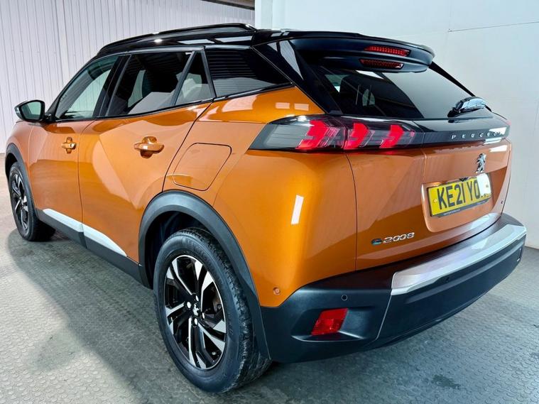 **THIS VEHICLE MAY BE AT OUR 150-CAR STORAGE FACILITY. PLEASE CALL AHEAD TO ARRANGE VIEWING AT OUR WINCHESTER SALES SITE** MOT January 2026. Serviced at 8k miles and will be serviced again by us upon sale. This Peugeot E-2008 finished in an eye-catching orange fusion with 17 inch alloy wheels is the perfect, safe SUV upgrade whether that is for city run-arounds or transporting the family. Equipped with various features such as automatic air conditioning, cruise control with speed limiter, heated front seats and more. Powered by a 50kWh battery providing a smooth, quiet enjoyable drive.