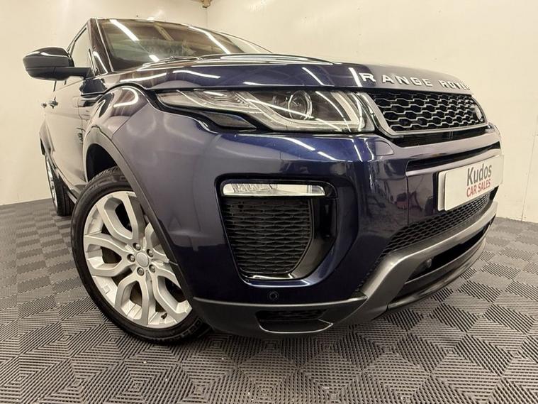 2018 LAND ROVER RANGE ROVER EVOQUE 2.0 TD4 HSE DYNAMIC 5dr Automatic - HEAD TURNING CAR, FINISHED IN STUNNING METALLIC LOIRE BLUE. NO DEPOSIT FINANCE AVAILABLE FROM ONLY £297 per mth. 6 MONTH WARRANTY INCLUDED. EACH VEHICLE COMES WITH A FREE HPI CLEAR REPORT AND AA BREAKDOWN COVER. ONLY 74000 MILES. SERVICE HISTORY AND JUST HAD A SERVICE. MOT UNTIL 03/03/2026. SUCH A STUNNING CAR AND REALLY LOVELY TO DRIVE. **LUXURY SPEC** FULL BLACK LEATHER INTERIOR, 3 SETTING MEMORY ELECTRIC FRONT SEATS, HEATED FRONT SEATS, TOUCH SCREEN SAT NAV, REAR PARKING CAMERA, FULL PANORAMIC GLASS ROOF WITH ELEC BLIND, FRONT AND REAR PARKING SENSORS, REAR CAMERA, CRUISE CONTROL, KEYLESS PUSH BUTTON START, ADJUSTABLE DRIVING MODES, TOUCH SCREEN DISPLAY, MERIDIAN SOUND SYSTEM, INDIVIDUAL CLIMATE CONTROL, XENON LIGHTS, LED DAYTIME LIGHTS, AIRCON, BLUETOOTH, DAB RADIO, POWER FOLDING MIRRORS, ELEC WINDOWS AND MIRRORS. UNMARKED 20 ALLOY WHEELS. FINANCE PACKAGES - With a number of lenders on board i am able to offer Finance to suit individual circumstances, including Sub Prime. All CARS ARE HPI CHECKED AND CLEAR. WARRANTY - At KUDOS CAR SALES every vehicle comes with a FREE 6 MONTH Warranty. Any repairs under warranty can be carried out at your local garage -Extended warranty available on request at extra cost. PREVIOUS NON SMOKER. 2 KEYS. ***ALL PART EXCHANGES CONSIDERED***