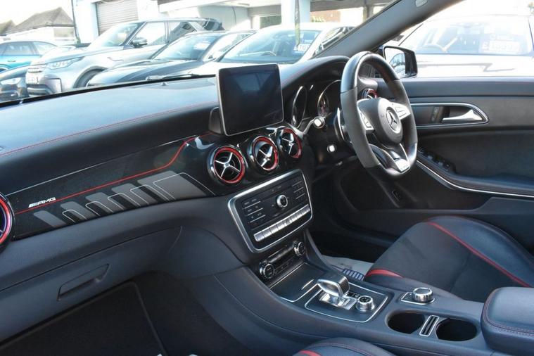 This 2018 Mercedes Benz CLA45 AMG boasts an impressive MOT valid until October 2026, offering you peace of mind for the road ahead. This striking AMG trim model features a powerful 2.0 litre petrol engine paired with a four wheel drive system, ensuring dynamic performance. As a Euro 6 compliant vehicle, it meets stringent emission standards. Inside, youll find a luxurious experience with two zone automatic climate control, complete with a digital display for precise temperature management. The car is also equipped with Bi Xenon headlights for excellent visibility and a convenient headlight wash system. The AMG Drive Unit, finished with leather trim on the gear shift, adds a touch of sportiness to the cabin. Direction indicators with one touch control provide added convenience for everyday driving. These features, combined with the advanced climate control and lighting systems, demonstrate the thoughtful engineering and premium feel that sets this Mercedes Benz CLA45 AMG apart from other vehicles in its class. Finished in Cosmos Black, comes with documented service history, it will also have a fresh service inspection from our in house technicians who also perform a PDI upon arrival. All our cars come with a minimum 6 months MOT, so not to worry, we have you covered!