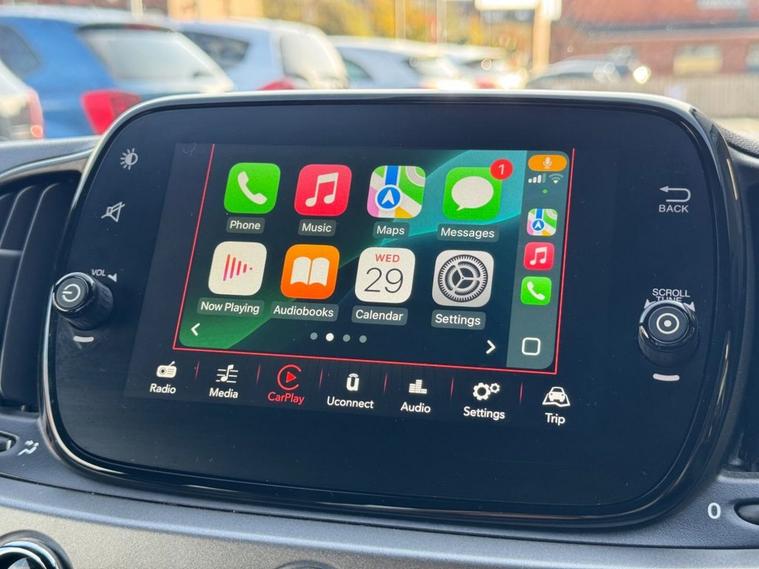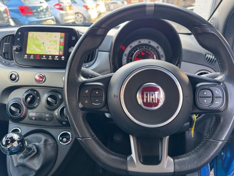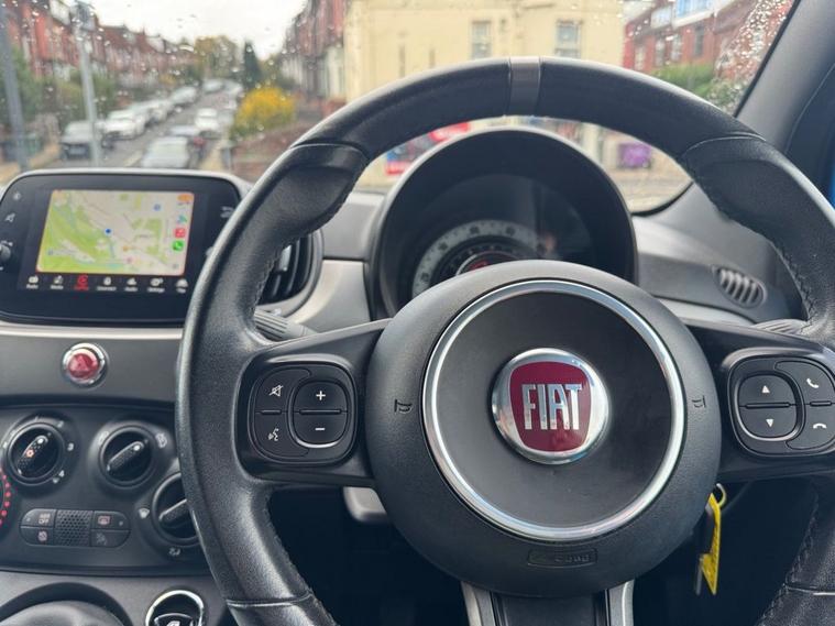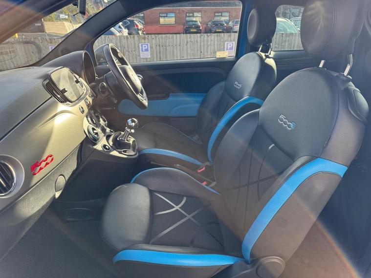 READY TO DRIVE AWAY TODAY !! FULLY INSPECTED THROUGH OUR WORKSHOP WITH MOT OCT 2026 (No Advisories). Fiat 500 1.2 S Finished in Electronica Blue paintwork with 15 graphite alloys. Insurance group 8 and over 50 miles per gallon. Spec includes half leather blue/black sport fabric seats, rear parking sensors, multi-function steering, cruise control, car play / android auto, trip computer, Bluetooth, DAB radio, USB input, Remote central locking with 2 keys, Air Con and much more. Call 01138032273 or visit dealer's website