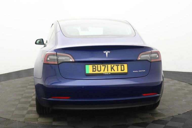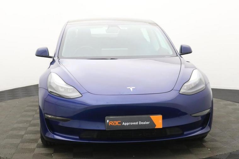 Henson Car Store presents the TESLA Model 3 (Dual Motor) Long Range Saloon 4dr Electric Auto 4WDE (346 ps) finished in Blue, this car is VAT qualifying. This 2021 Tesla Model 3 Long Range presents a superb opportunity, having been owned by just one individual. As an electric vehicle with Four Wheel Drive, it offers an impressive battery capacity of 78 kWh, providing a maximum range of 360 miles when new. This model benefits from a fixed panoramic glass roof, enhancing the sense of space, and features Park Assist with front cameras and sensors for easier manoeuvring. Keyless entry and remote control via an app add to its modern convenience, alongside a 2 zone climate control system. The Long Range variant of the Model 3 is designed to offer a superior driving experience. Its 360 mile range highlights its capability for longer journeys compared to many other electric vehicles. Furthermore, the convenience of charging is evident with a full charge at home taking approximately 12 hours, while rapid public charging can achieve 80% capacity in just 26 minutes. This Tesla also boasts a large boot space, making it a practical choice for everyday use and travel.